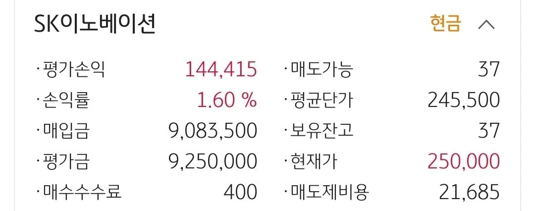 사진 2. SK이노베이션. 14만 원 벌고 있다.
