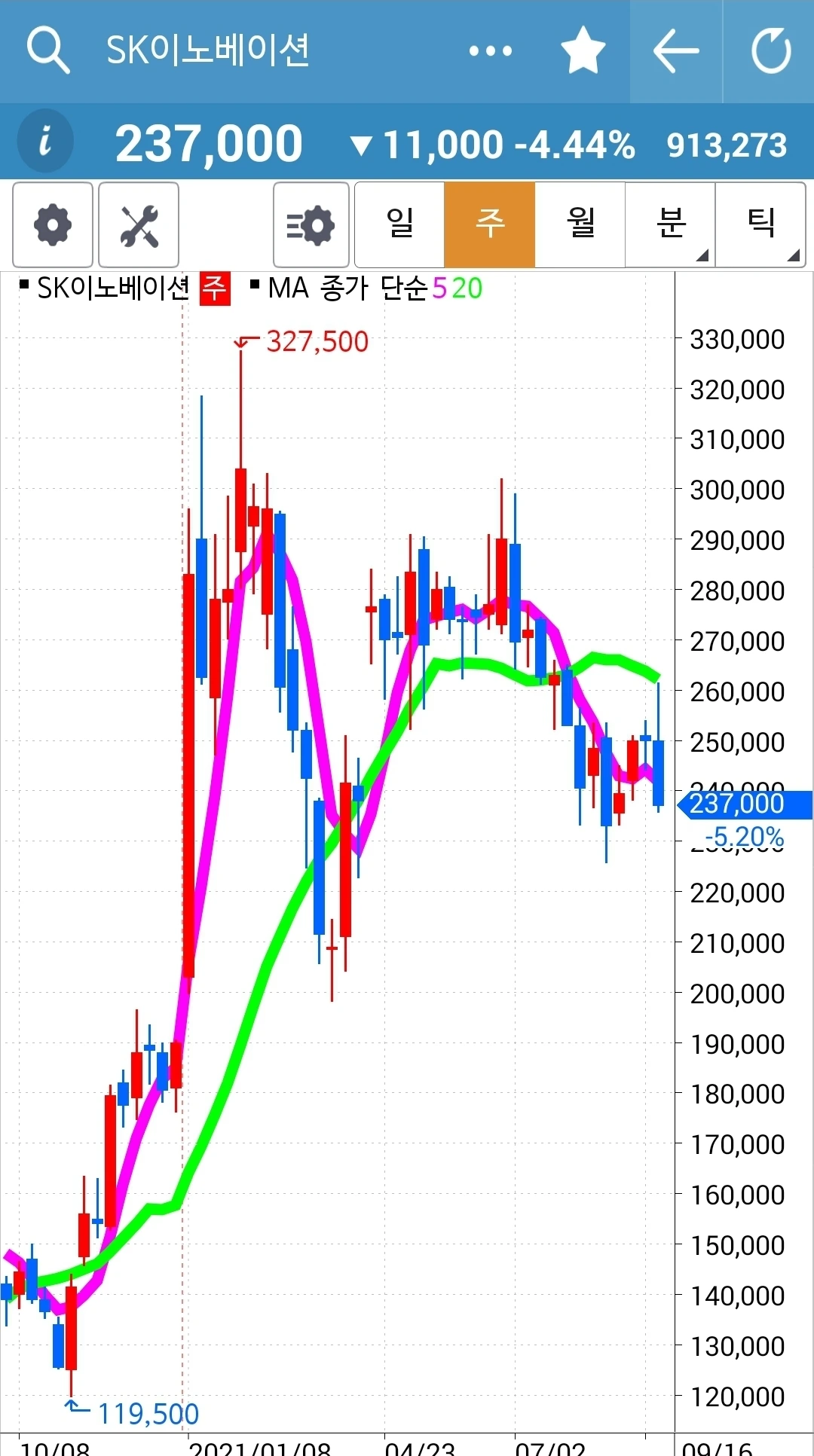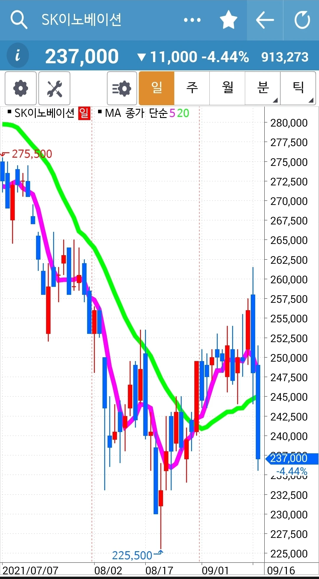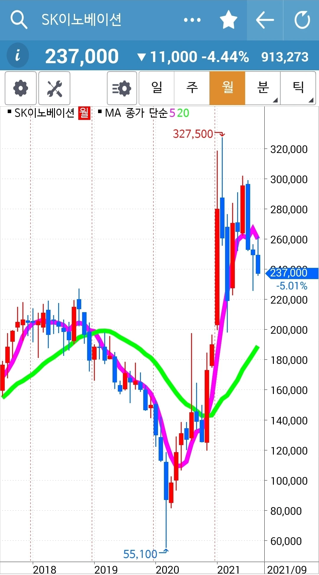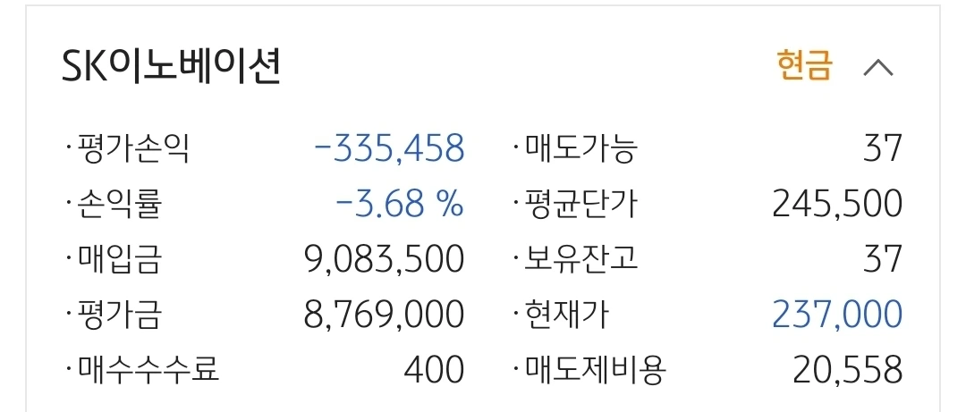 사진 2. SK이노베이션. 33만 원 손실 중.