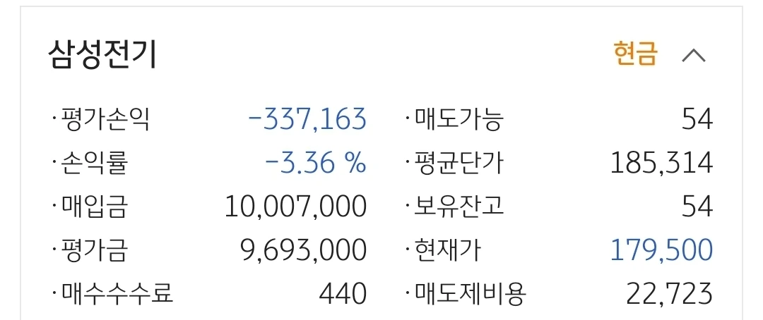 사진 3. 삼성전기. 33만 원 손실 중.