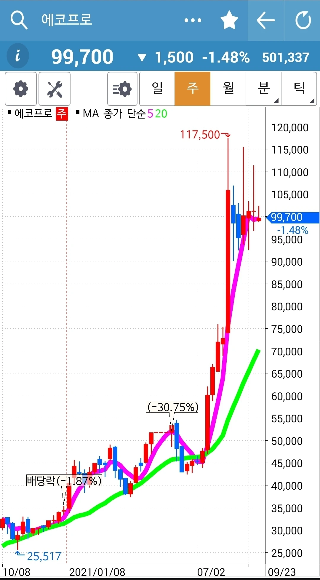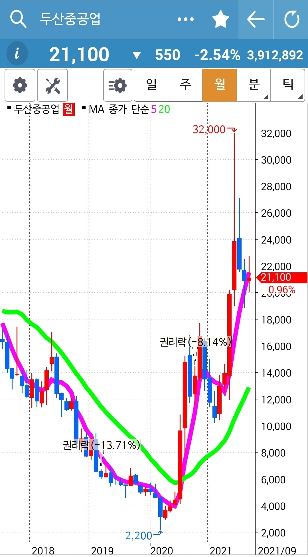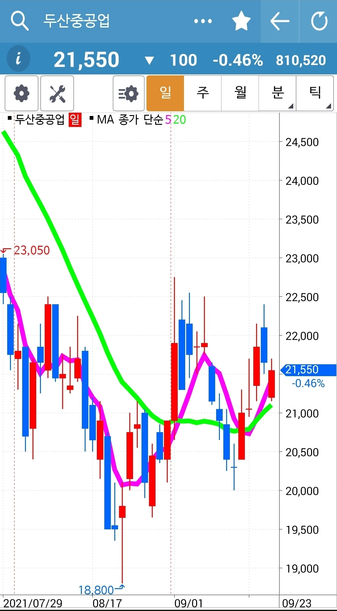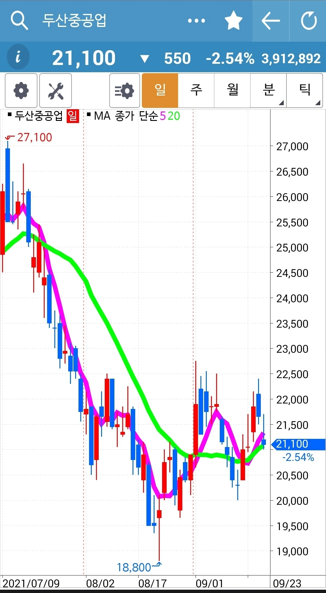 그렇다고 오메 기죽어! 온갖 불행의 기운이 몰려오도록 그렇게 축 쳐져있을 텐가! 노노노! 그건 내가 아니다. 중학교 때부터 '운명아 비켜라 내가 나간다!'라는 같잖은 소리를 외쳐대던 나 아니던가. 그래 기죽을 거 하나 없다. 와이? 난 원칙을 어기지는 않았으니까. 비록 코딱지만큼이지만 5일선은 20일선 아래로 내려갔고 그래서 정리했고 5일선이 20일선 위에 있는 것들을 샀으니까. 그래 내 잘못은 없어. 선택이 나빴다치자. 그러면 또 어떠랴. 5일선이 20일선 아래로 내려가면 그때 정리하면 된다. 그러나 하루 중 언제 매매해야 할지는 정해야 할까? 어제 만약 종가에 정리한다라는 원칙이 있었다면 매우 손실을 줄였을 것 같으니까 말이다. 그런 원칙을 세웠던 것도 같고 아닌 것도 같고 그렇다. 왜냐하면 그런 원칙을 세웠었는데 언젠가 장중에 5일선이 20일선 아래로 내려가도 종가까지 고지식하게 기다렸더니 어마어마하게 빠져 고통스러웠던 적이 있어 그런 원칙은 필요 없다고 했던 것도 같기 때문이다. 그런 경우도 많으니 종가매매를 원칙으로 정할 순 없다. 그래! 나의 원칙은 단 하나! '난 아무것도 몰라요~ 5일선이 20일선 아래로 내려가면 매도할 뿐야요~' 복잡하면 안 돼! 요거 딱 하나는 지킬 수 있다. 파이팅!
