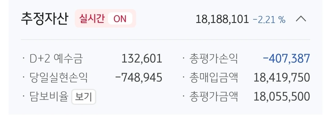 사진 1: 추정자산. 1818만 원. 큰일이다. 월백! 은커녕 월이백 손실 기록 중이니 말이다.