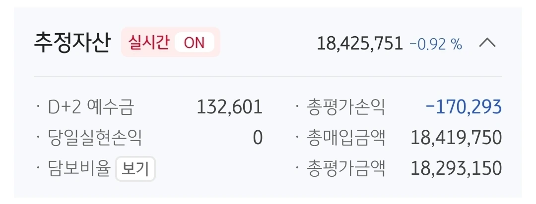 사진 1. 추정자산. 1842만 원. 4일 동안에 258만 원을 벌어야 한다. 아이고다 정말.