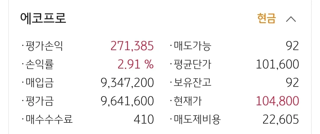 사진 3. 에코프로. 27만 원 수익중.
