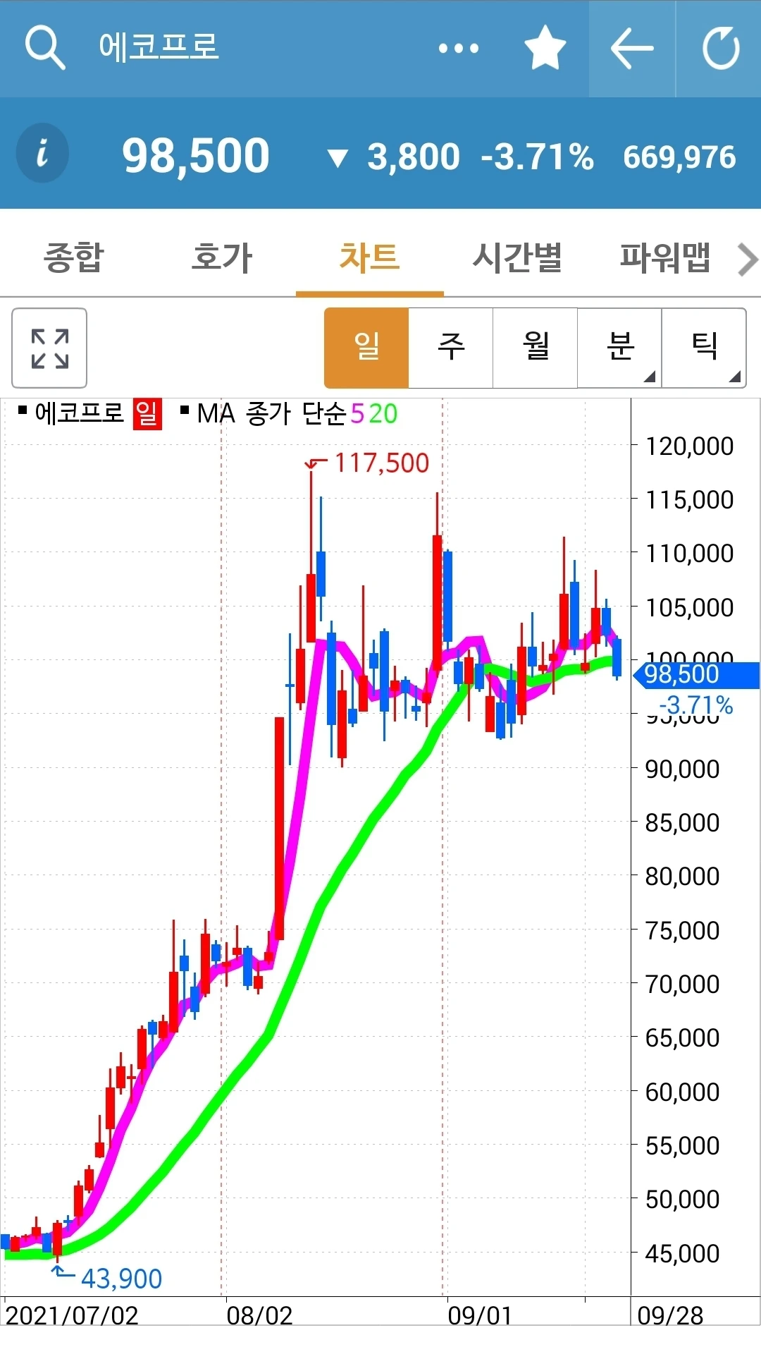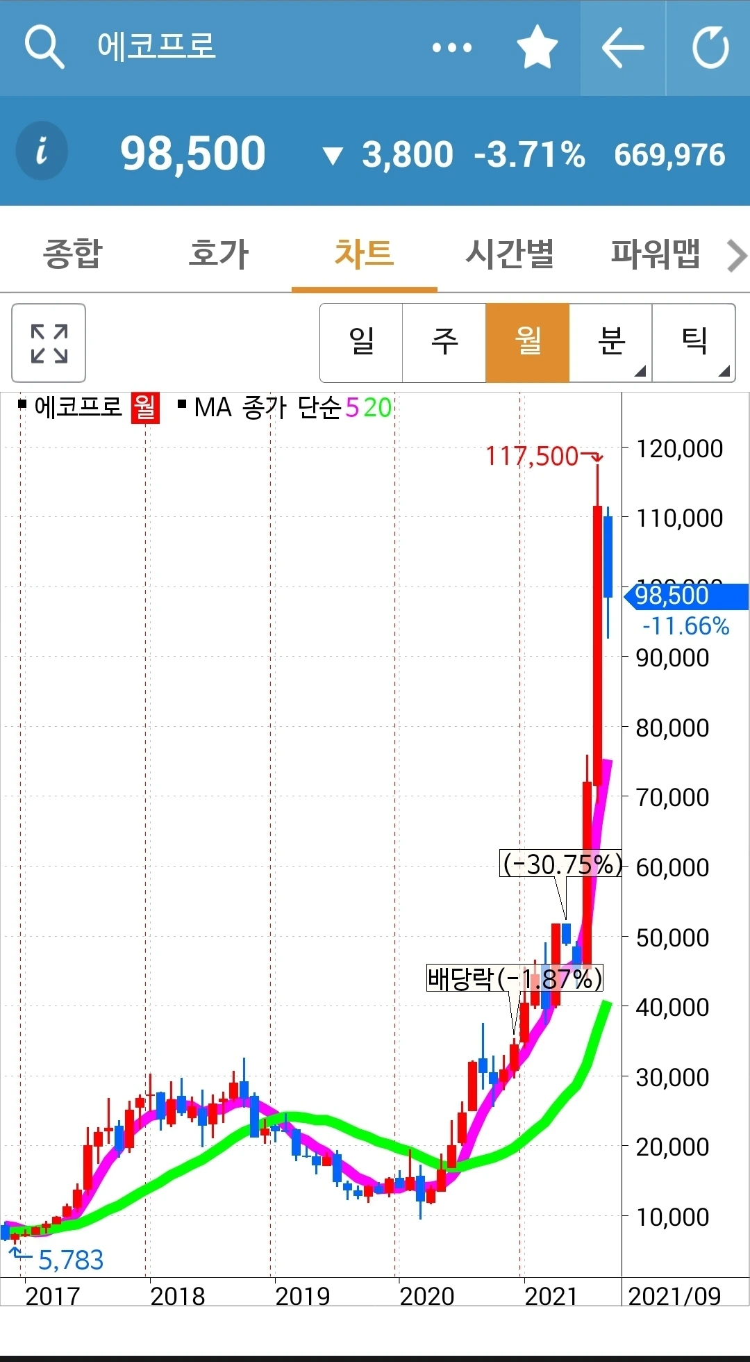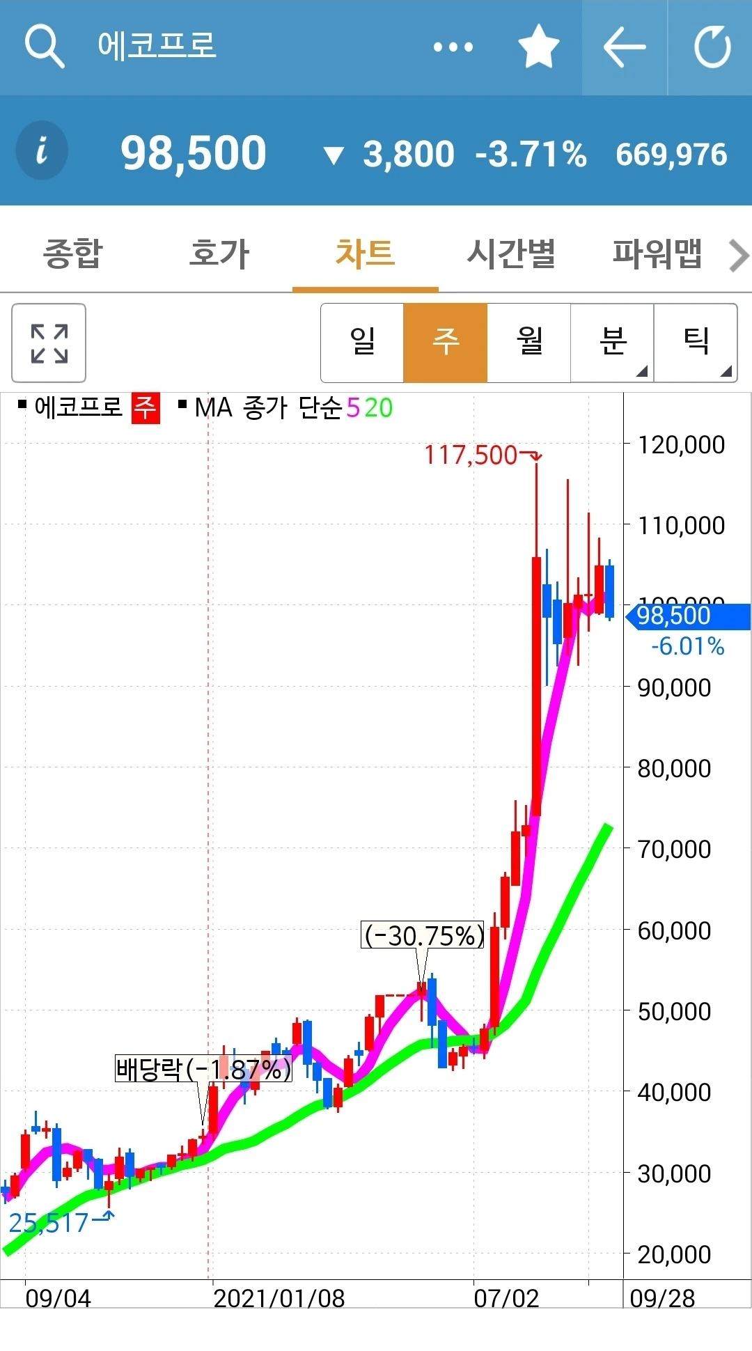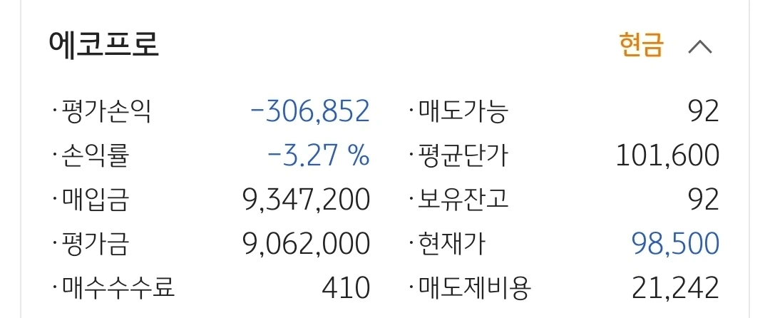 사진 3. 에코프로. 30만 원 손실 중이다.