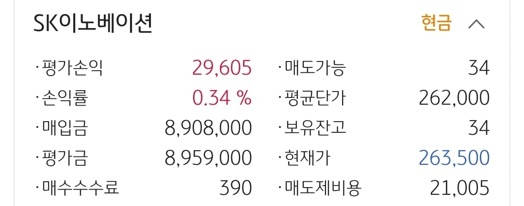 사진 3. SK이노베이션. 29,000원 수익 중이다.