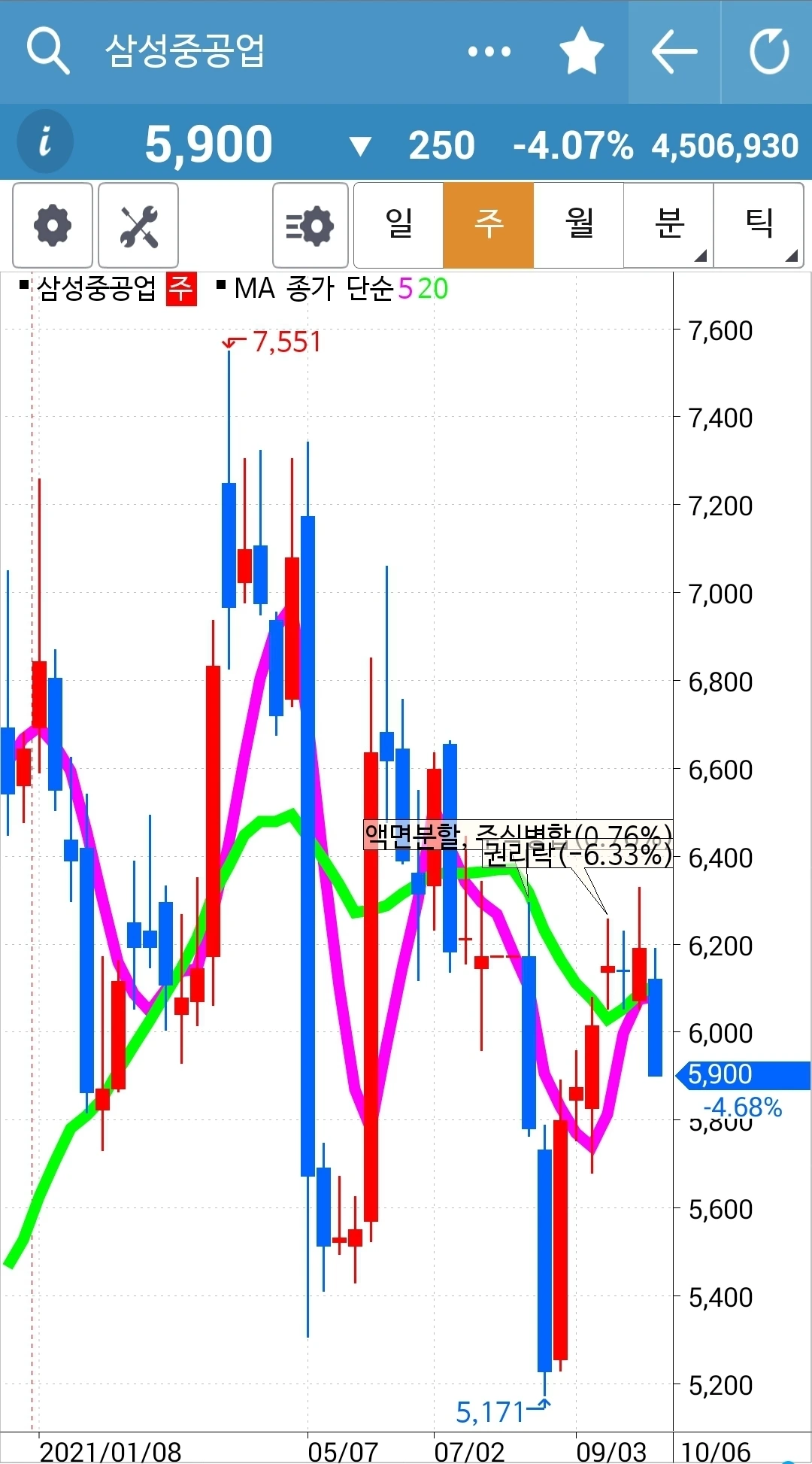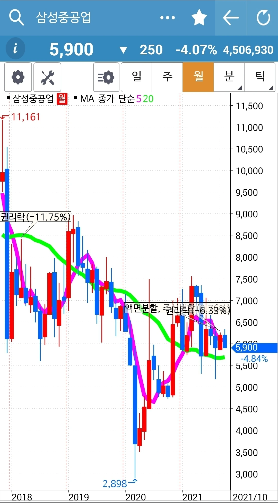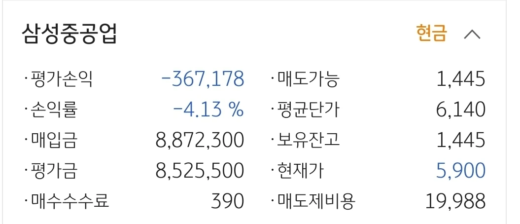 사진 3. 삼성중공업. 36만 원 손실 중.