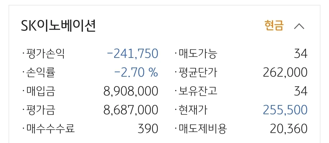 사진 2. SK이노베이션. 24만 원 손실이다.