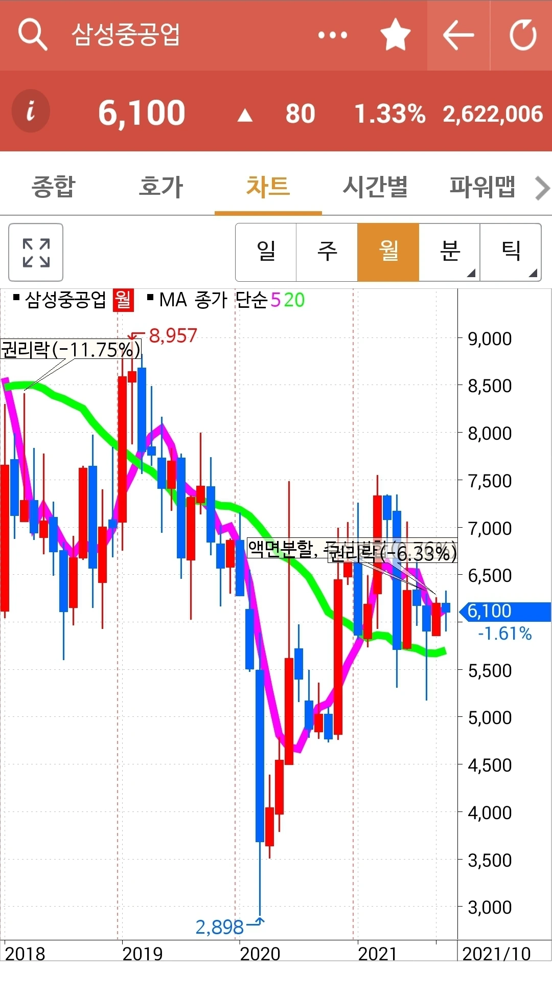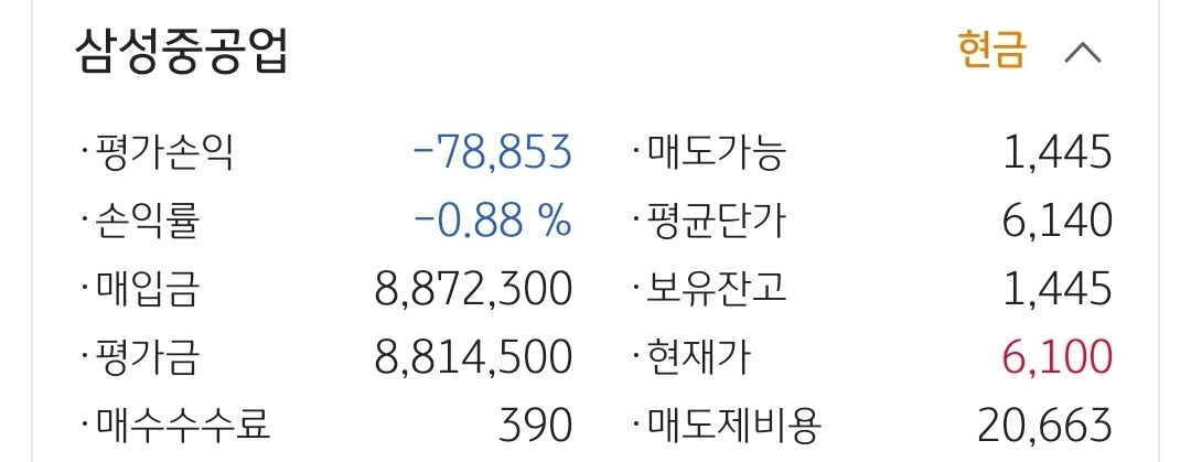 사진 1. 삼성중공업. 78,000원 손실 중.