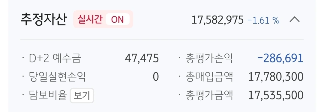 사진 1. 추정자산. 1,758만 원. 이천으로 매달 백! 은커녕 242만 원 손실 중이다.