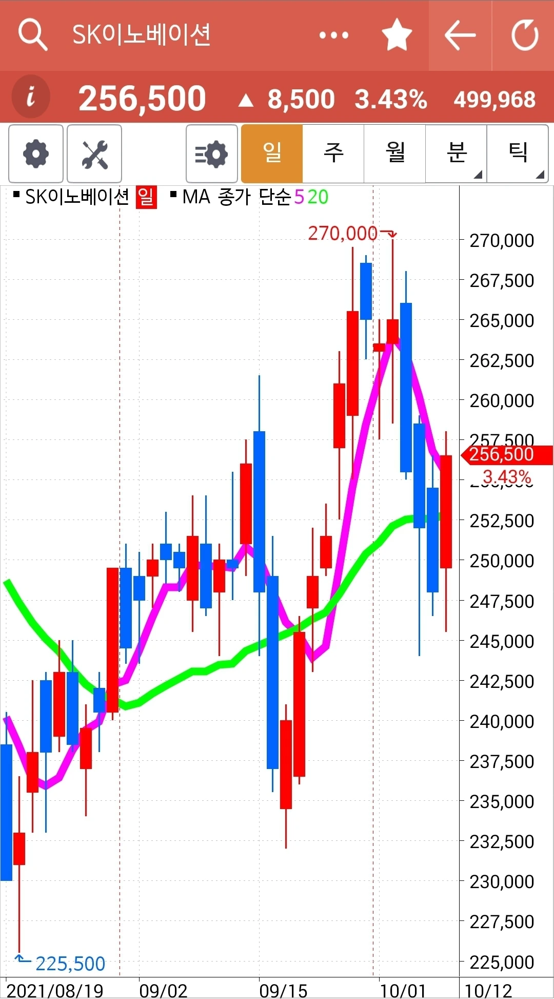 오늘 어쩌면 SK이노베이션 빵! 이 제목이 되었어야 할지 모른다. 그러나 헐레벌떡 주문 넣고 그게 체결 안된 걸 알고 너무 당황했기에 그럴 새가 없었다. 이제야 감탄한다. 오메 이쁭거. 푸하하하 어쨌든 난 지극히 단순한 나의 원칙. '난 아무것도 몰라요~ 5일선이 20일선 아래로 내려가면 매도할 뿐야요~' 만은 지켜낼 것이다. 그거면 된다. 파이팅!!!