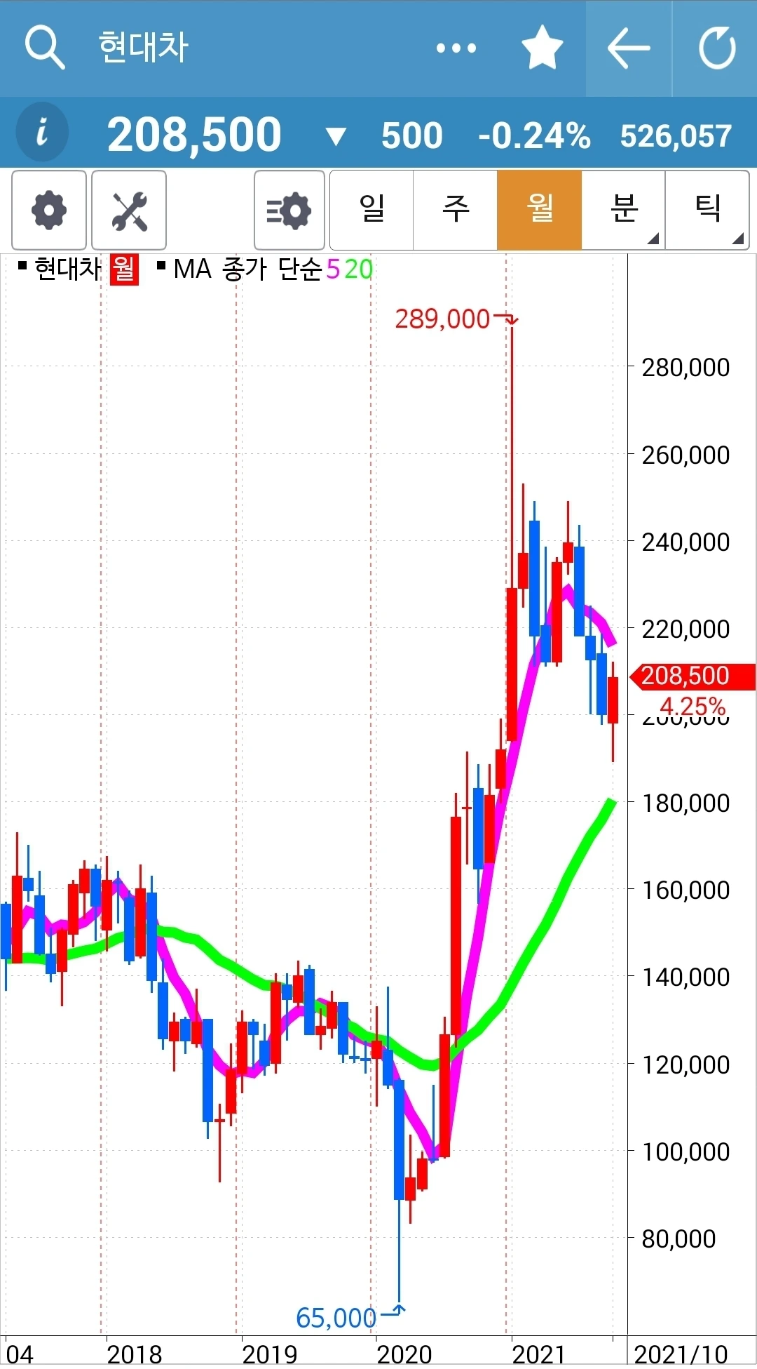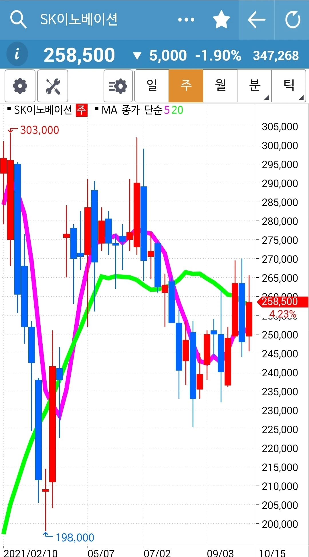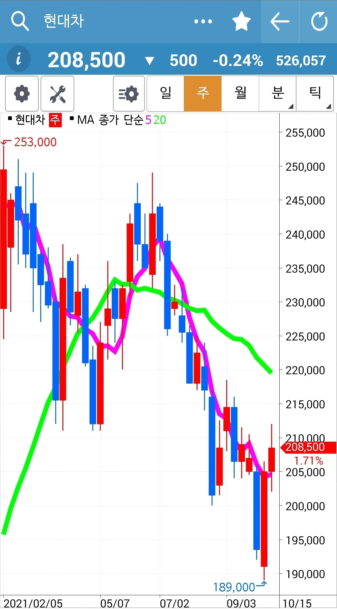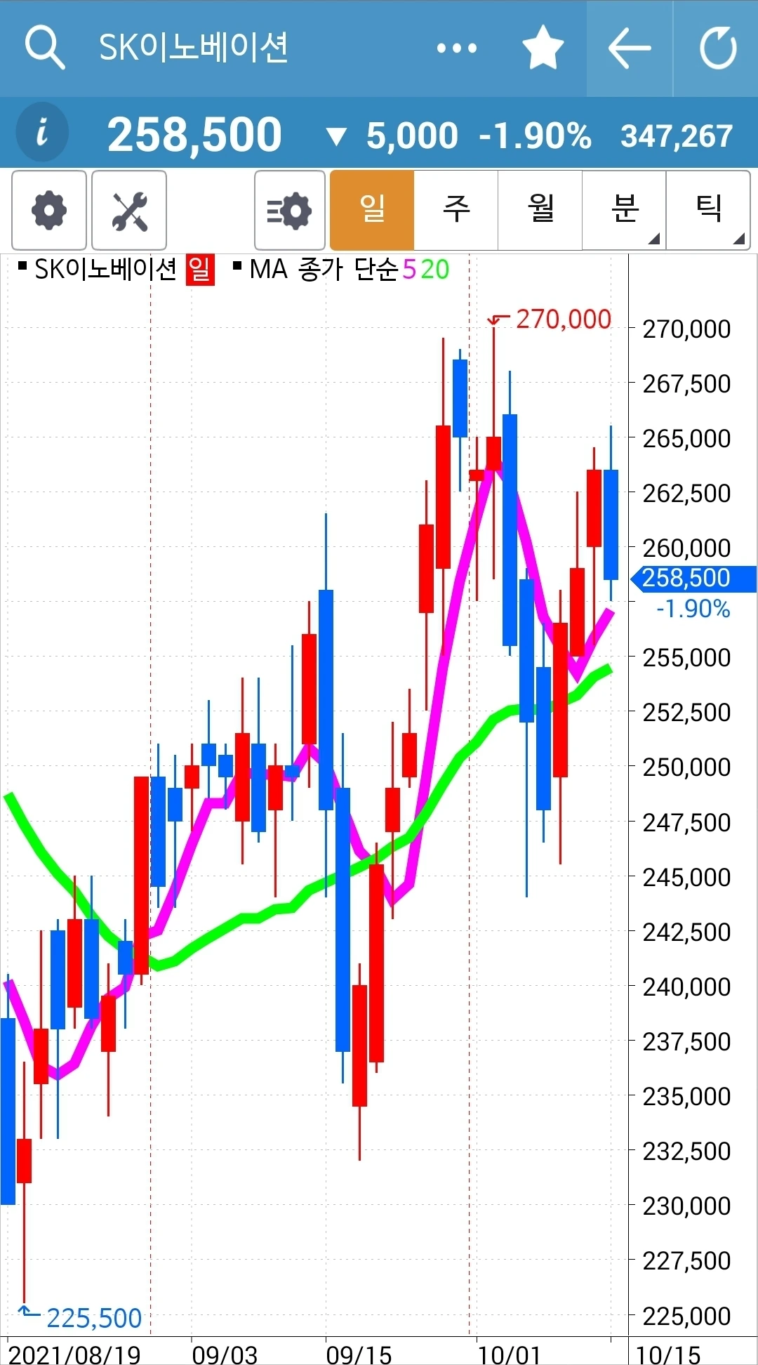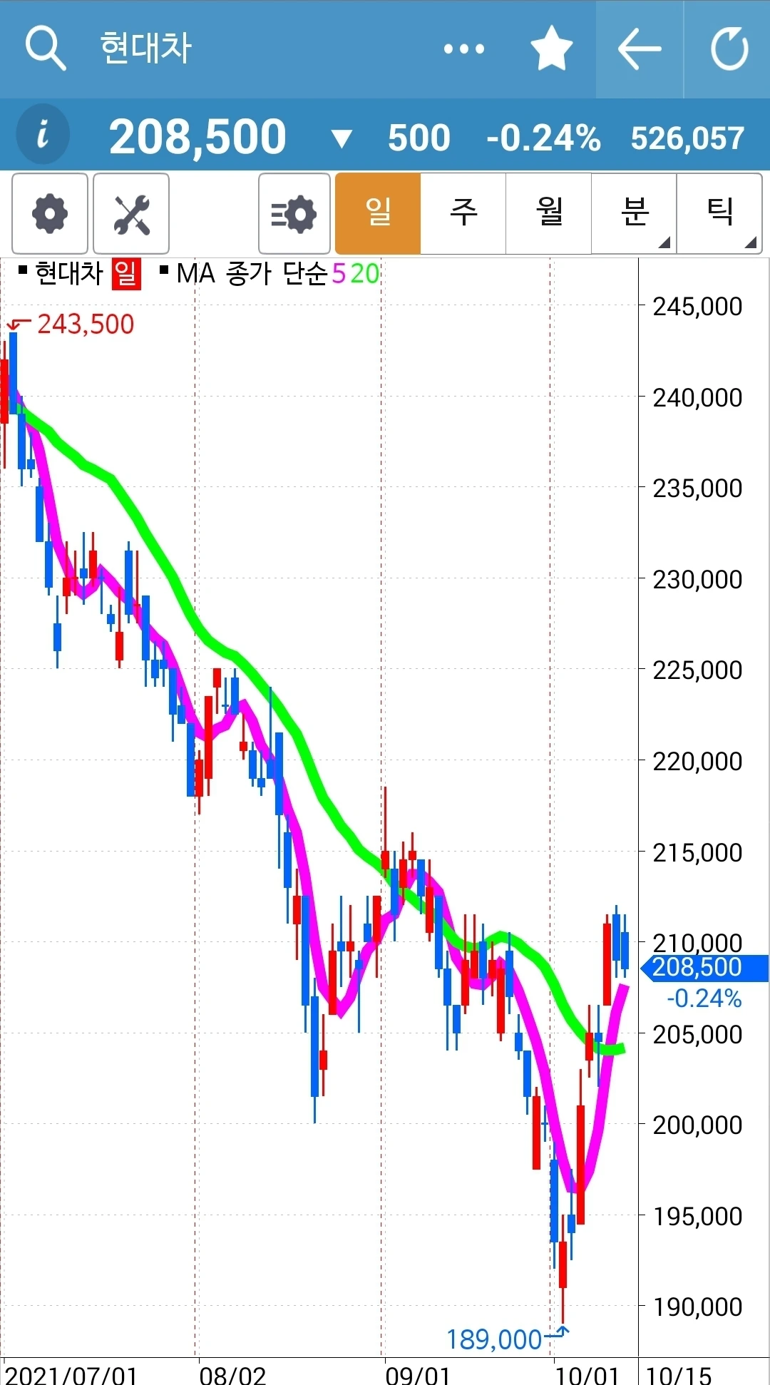 긴 음봉이 나왔다. 그래도 5일선이 20일선을 건들지 않아 아무 행동하지 않았다. 난 요것만 할 줄 알면 된다. '난 아무것도 몰라요~ 5일선이 20일선 아래로 내려가면 매도할 뿐야요~'