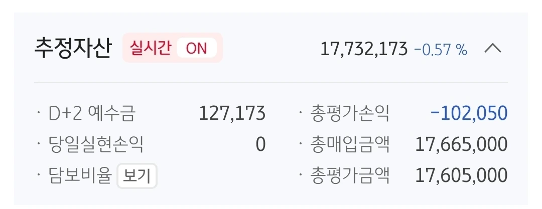 사진 1. 추정자산. 1773만 원. 원금 이천만 원에서 227만 원 손실 중.