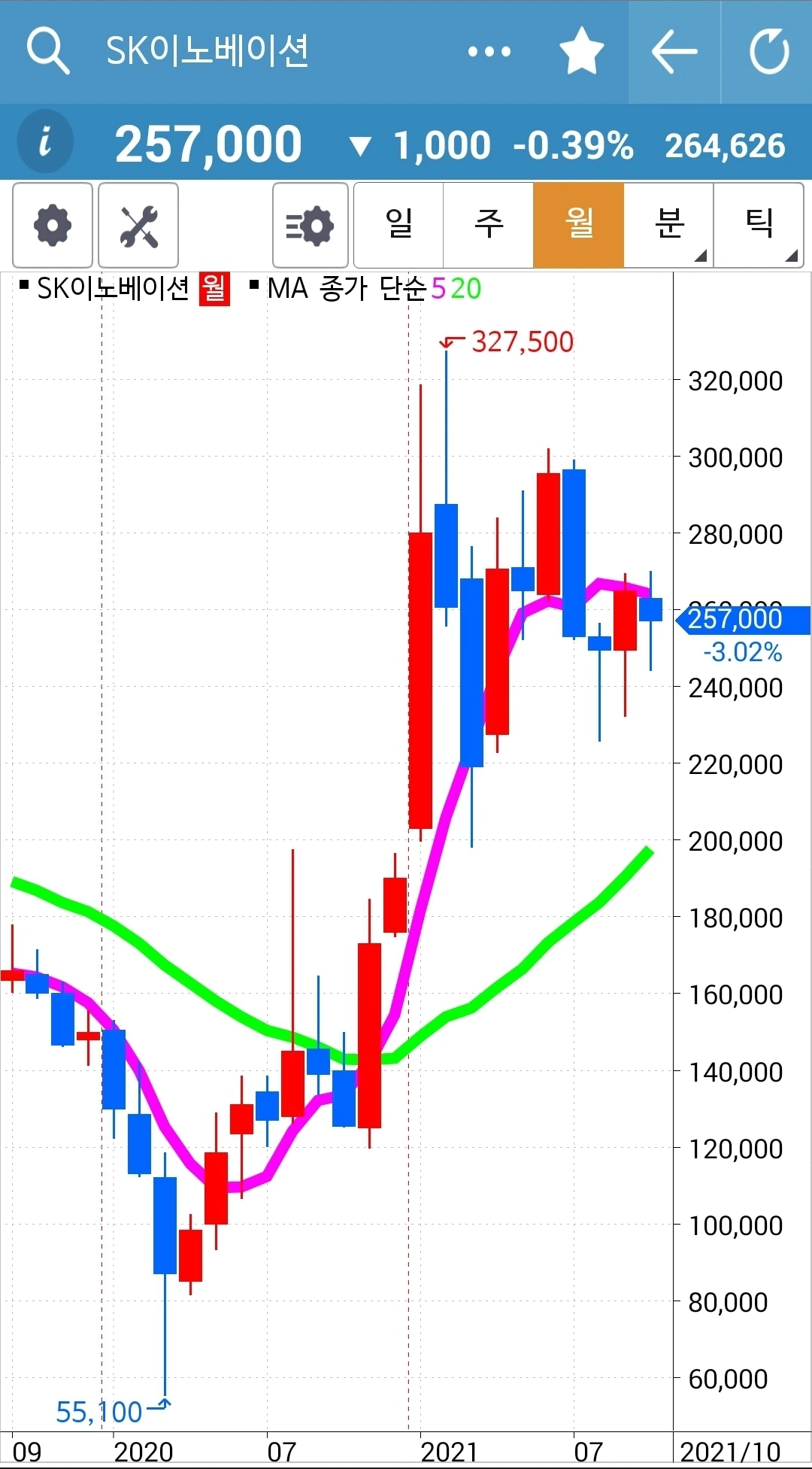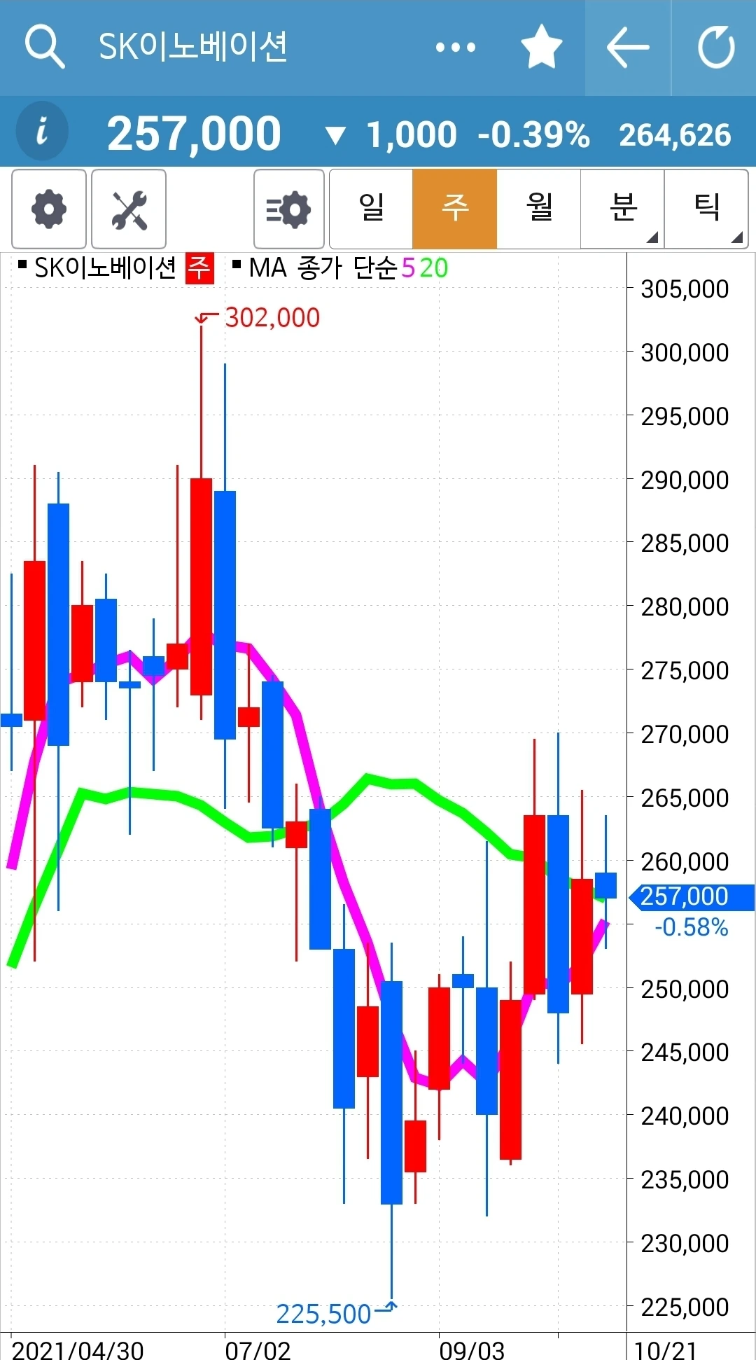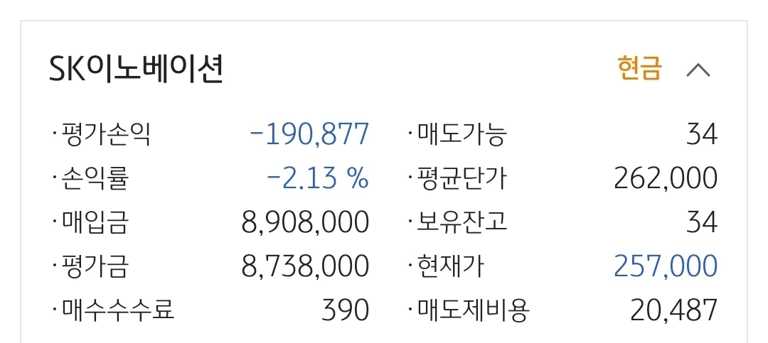 사진 2. SK이노베이션. 19만 원 손실 중.