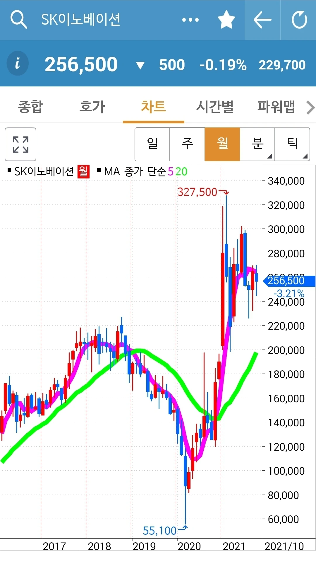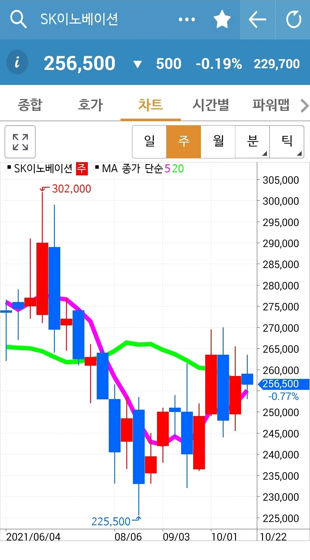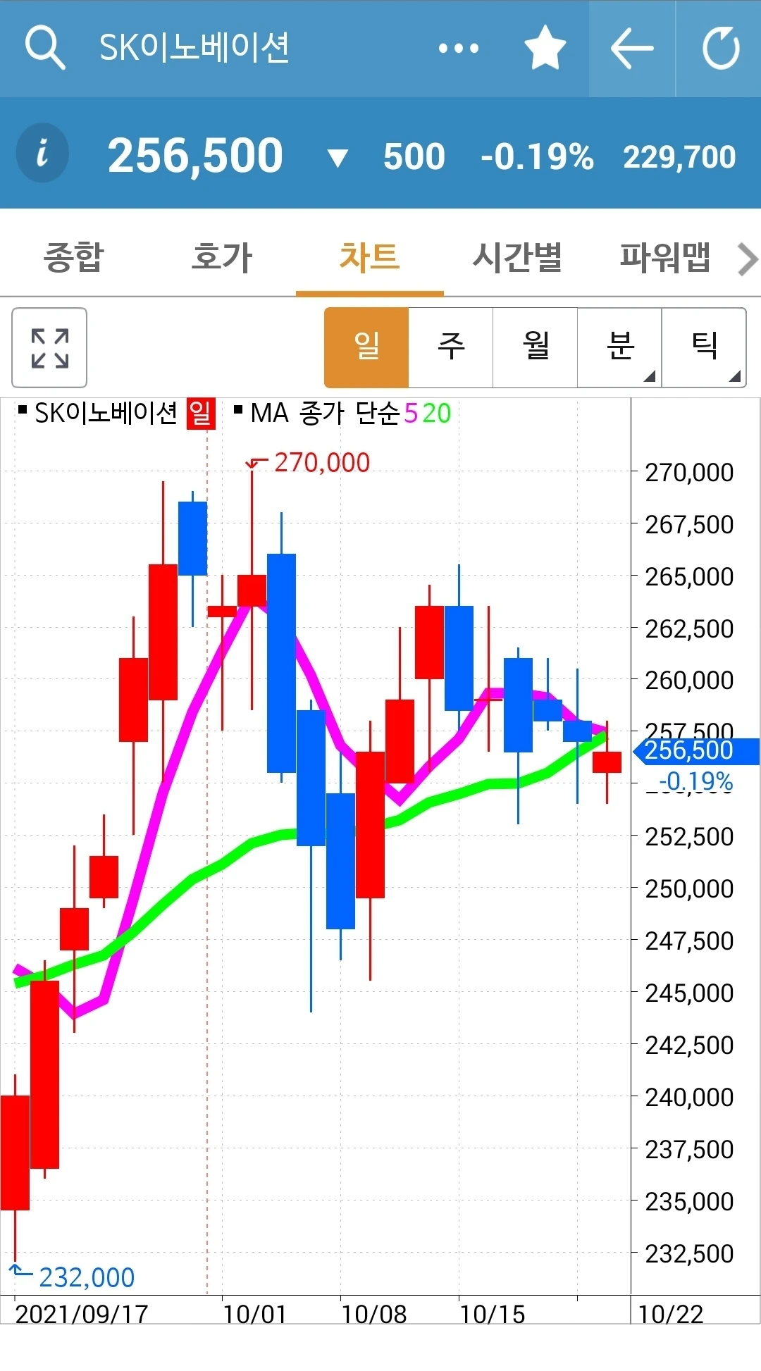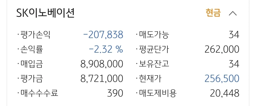 사진 2. SK이노베이션. 20만 원 손실 중.