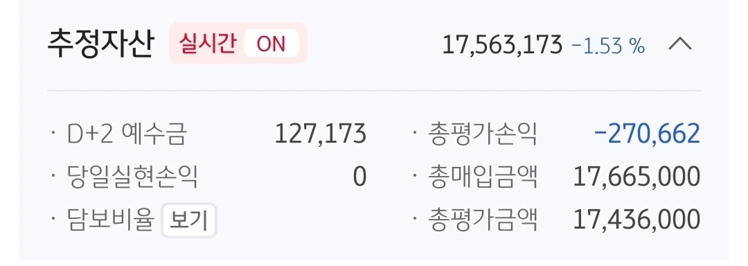 사진 1. 추정자산. 1756만 원. 원금 이천에 244만 원 손실 중.