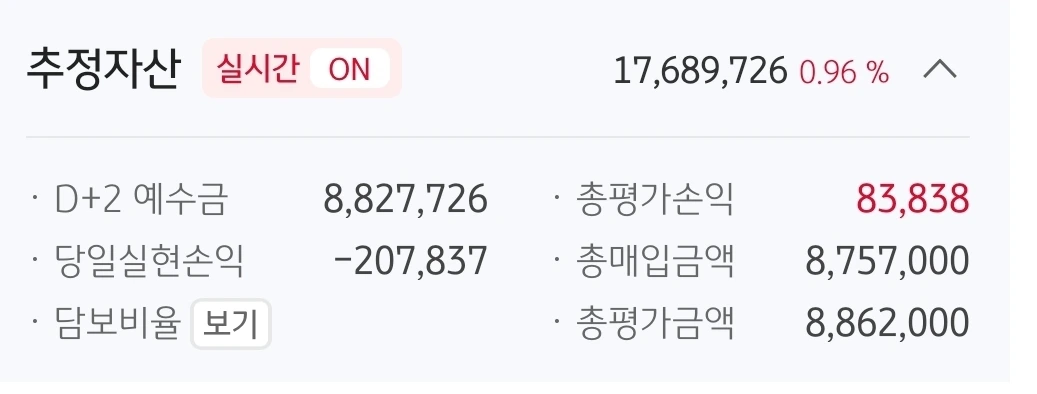 사진 1. 추정자산. 1768만 원. 이천만 원 원금에 232만 원 손실 중.