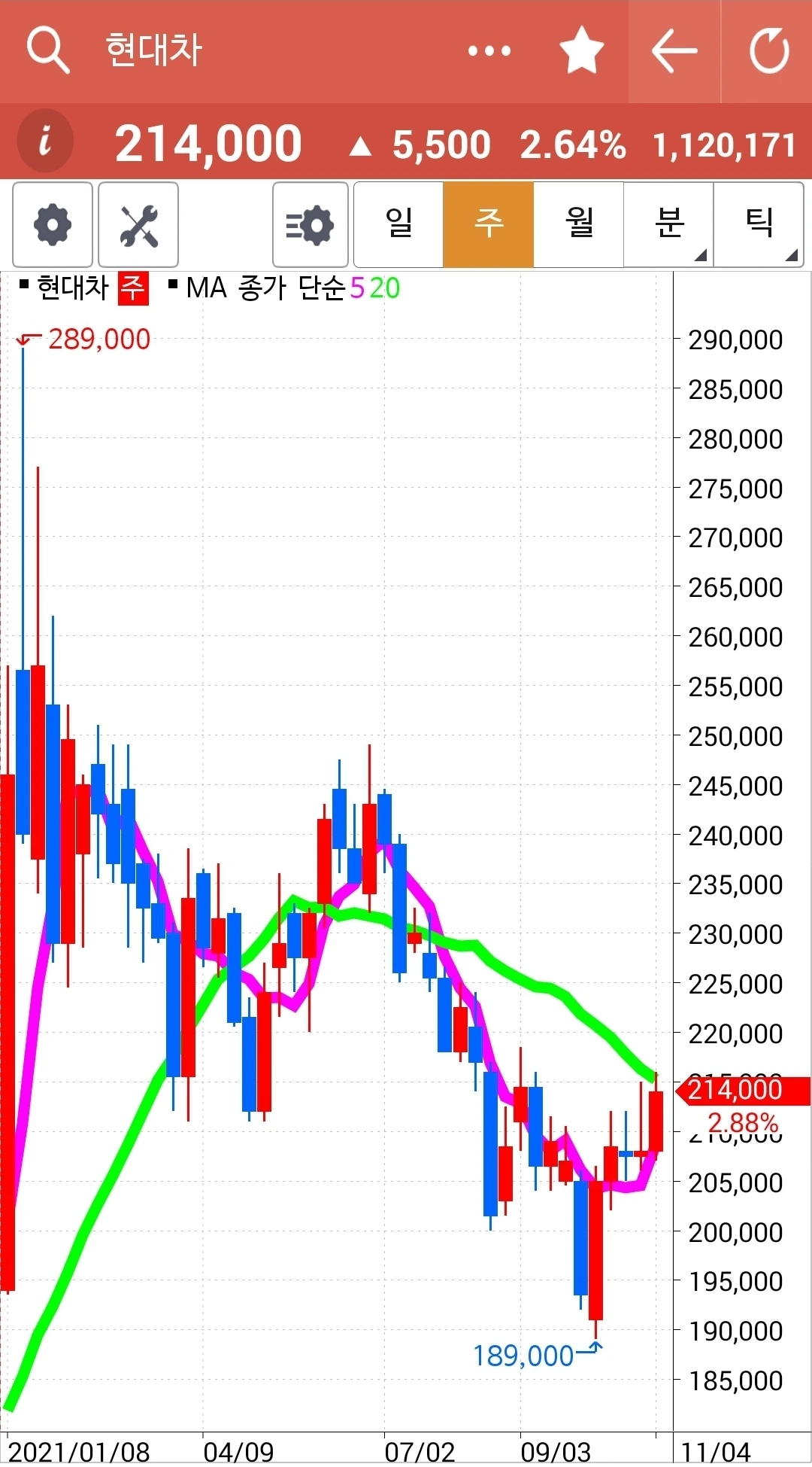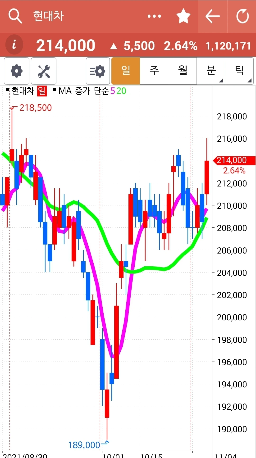 20일선에서 싸악 돌리는 모습이 너무 예쁘다. 푸하하하 '난 아무것도 몰라요~ 5일선이 20일선 아래로 가면 매도할 뿐야요~' 파이팅!!!