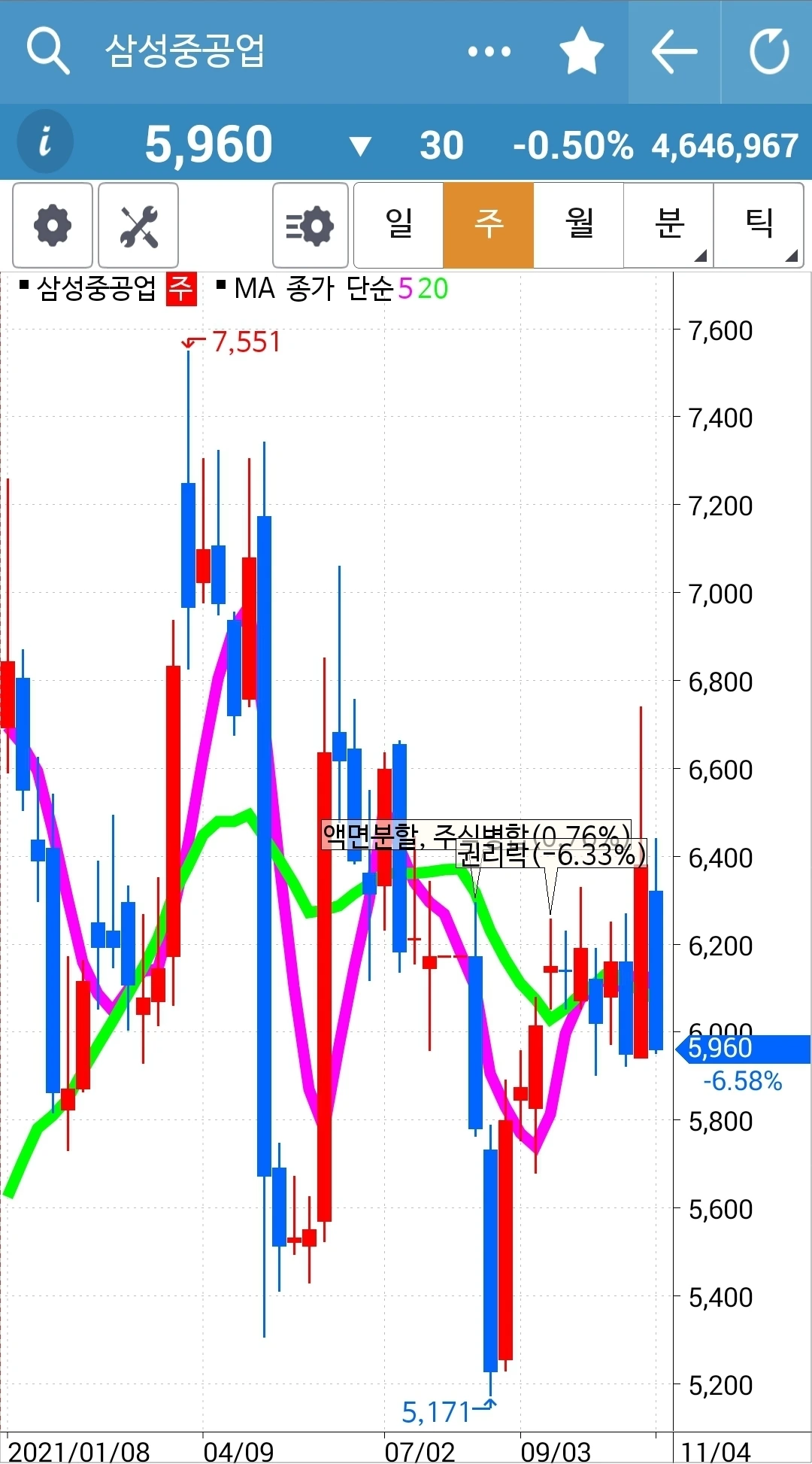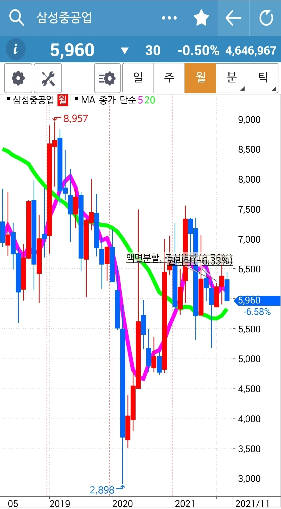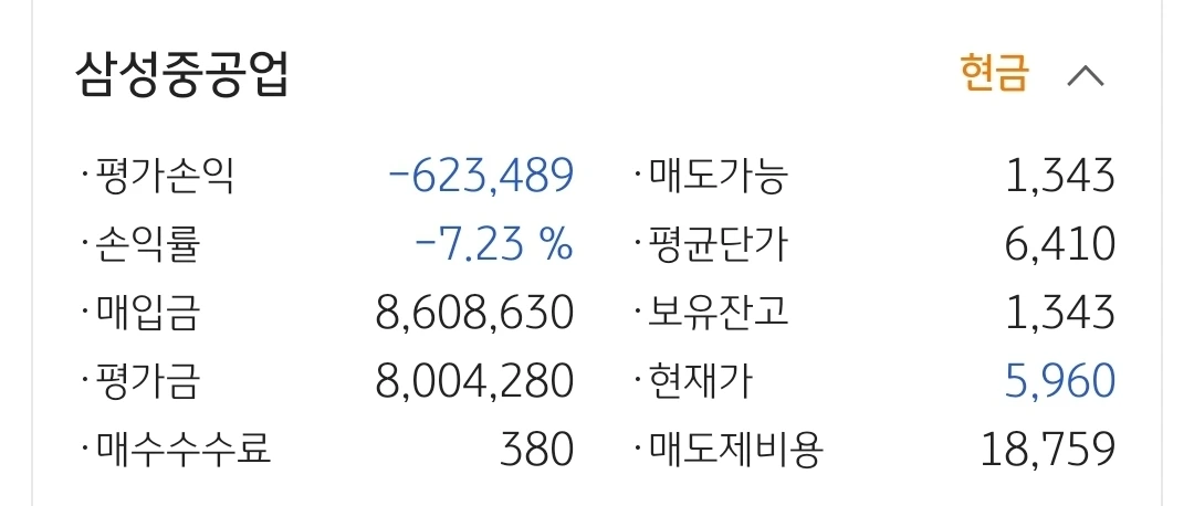 사진 2. 삼성중공업. 62만 원 손실 중.