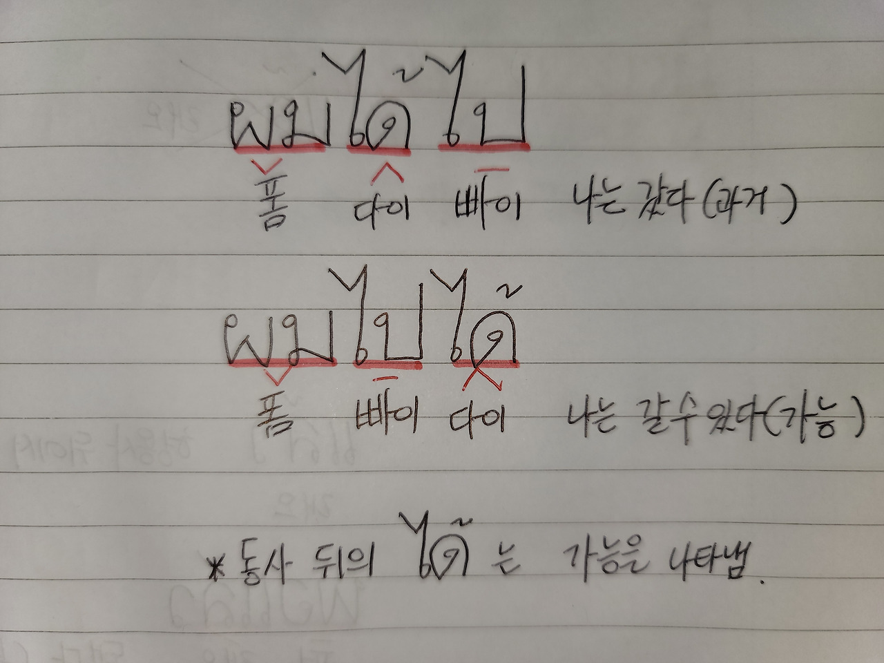 ผมไปได้ 폼빠이다이 나는 갈 수 있다.(가능)