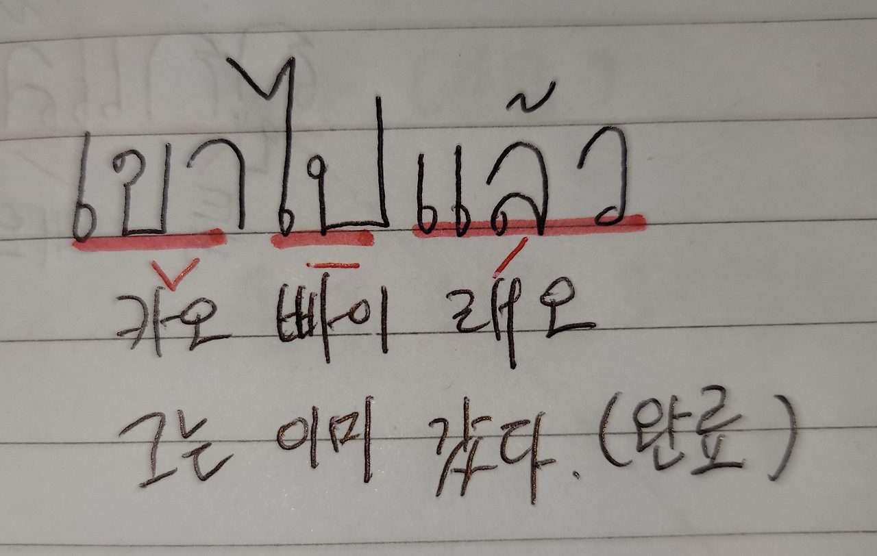 เขาไปแล้ว 카오빠이래오 그는 이미 갔다. (완료)