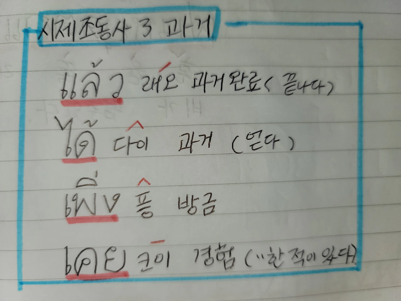 แล้ว 래오 끝나다. 과거완료형.