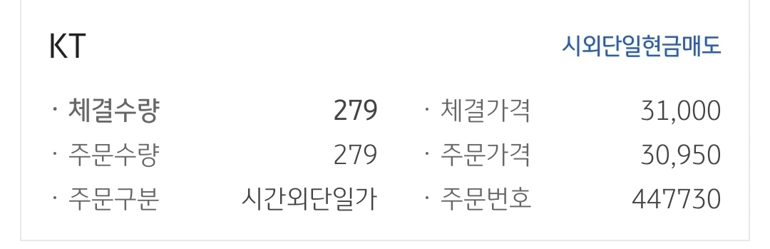 사진 2.'난 아무것도 몰라요 5일선이 20일선 아래로 내려가면 매도할뿐예요~' 원칙에 따라 매도한 모습. 왜 시간 외 단일가매도냐하면 혹시나 종가에 다시 5일선이 20일선 위로 올라가지는 않을까 기다려 주느라고. 그러나 종가 후에도 내려왔기에 가차 없이 매도했다.