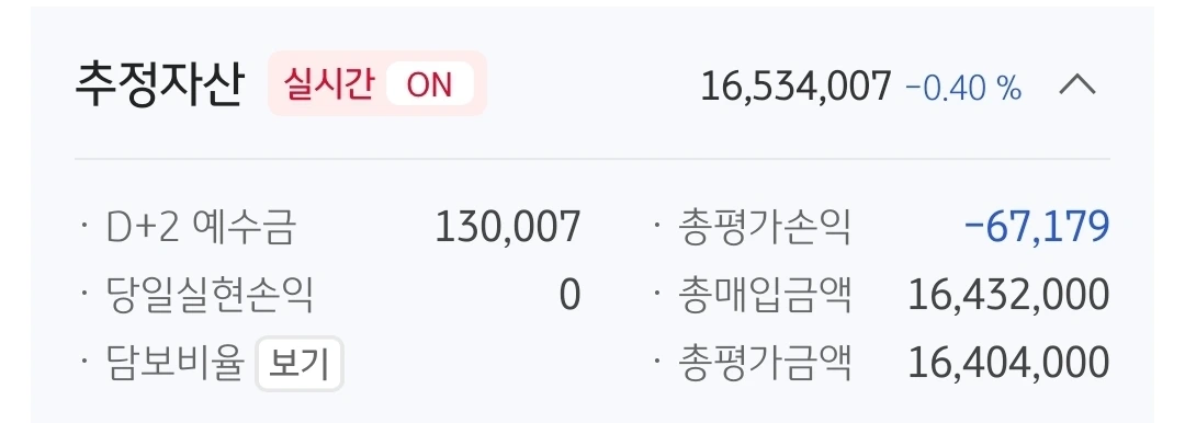 사진 1. 추정자산. 1653만 원. 347만 원 손실 중.