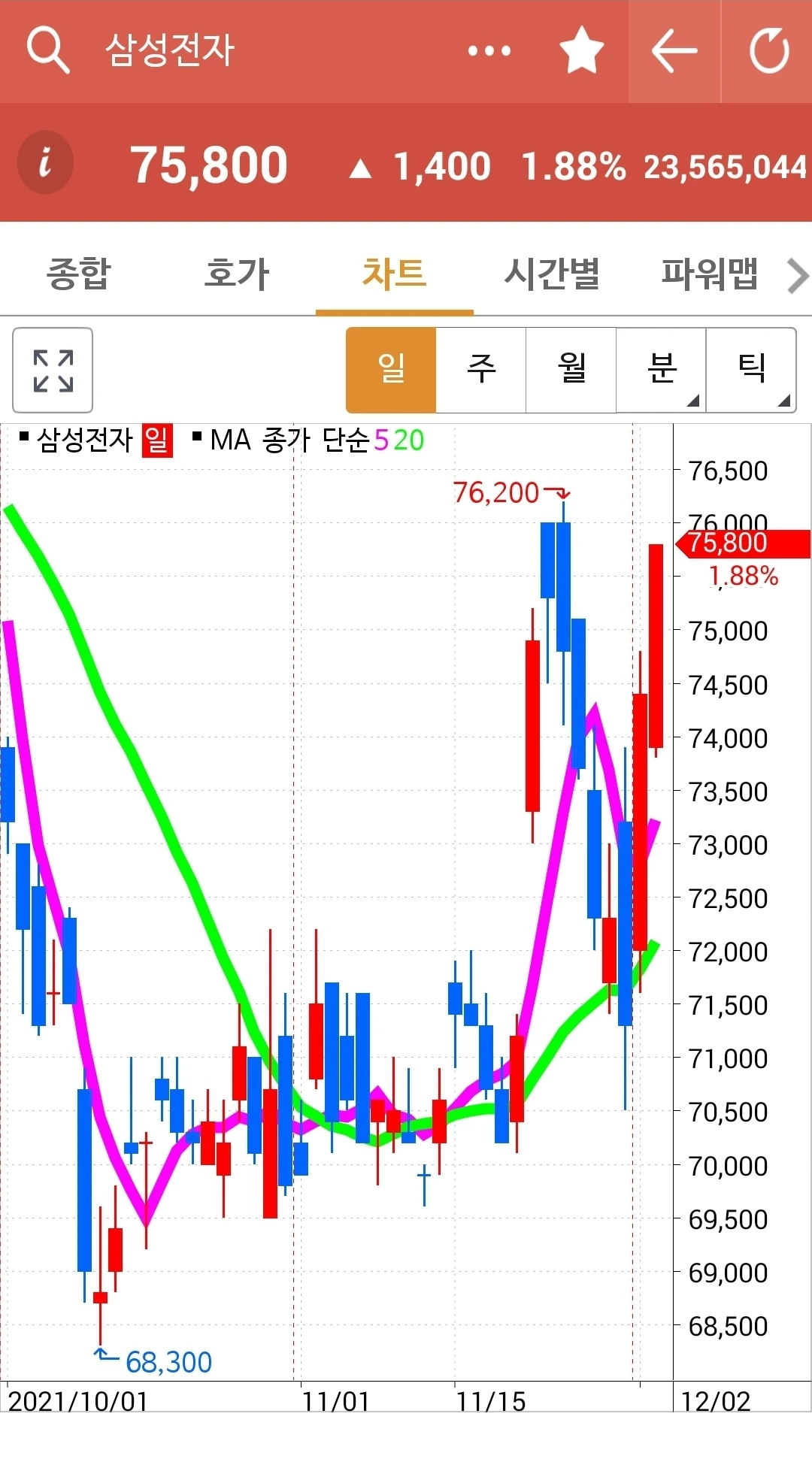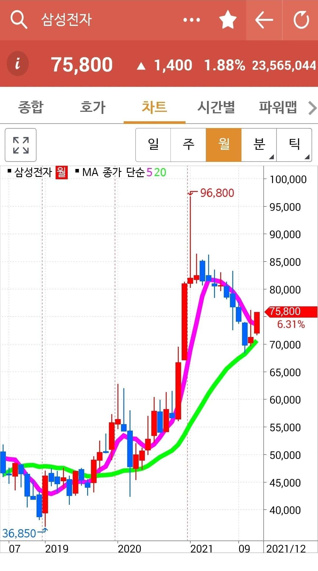 빵! 빵빵! 오홋. 길고도 긴 양봉. 멋지다. 거대한 힘이 느껴진다. 가거라. 높이높이 올라가거라. 파이팅! 5 주선이 20 주선을 뚫고 올라오려는 주봉도, 5개월선이 20개월선을 탁 건드리고 다시 위로 솟구치는 월봉도 너무너무 멋지지 아니한가. 내 품 안에 들어오니 모든 게 사랑스럽기만 하다. 푸하하하 파이팅!