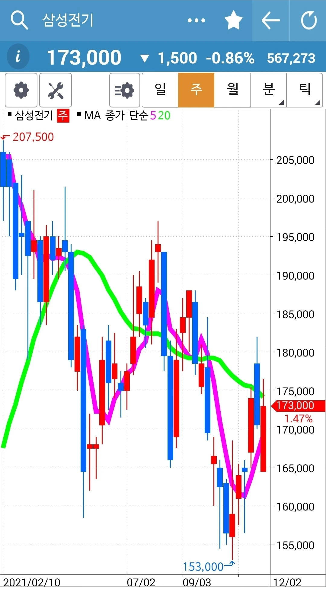 삼성전자가 빵! 멋지게 올라주었다. 그러나 전고점을 쉽게 터치하리라 믿었던 삼성전기는 비실 비실이다. 그래도 5일선이 20일선 위에 있으므로 내가 해야 할 일은 없다. 현금 백 프로 매매로 할 수 있는 만큼만 하니까 마음이 편하다. 하루 종일 주식 시장을 들여다보지 않아도 종가 무렵에만 나의 원칙에 맞는가 체크해도 별 부담 없이 굴러간다. 나의 여력을 다른 데 쏟아도 되니 좋다. 선물 주식합네 선물합네 할 때는 하이리스크 하이리턴이라고 벌 때는 잘 벌지만 잃을 때는 그야말로 타격이 컸다. 그런 건 장을 꼼짝없이 지킬 수 있는 사람이 해야 할 것 같다. 그래. 안전빵으로 가자. 현금 백 프로 매매만 하는 거다. 이런 하락 속에서도 마음에 큰 상처 없이 원칙을 따라갈 수 있으니 말이다. 그래! 가늘고 길게! 그러다 보면 큰 수익이 날 때도 있겠지. 선물이니 선물주식이니 그런데 눈 돌리지 말자. 안전하게 현금 백 프로 매매만. 욕심부리지 않고 조금씩 잘 쌓아가리라. 파이팅!