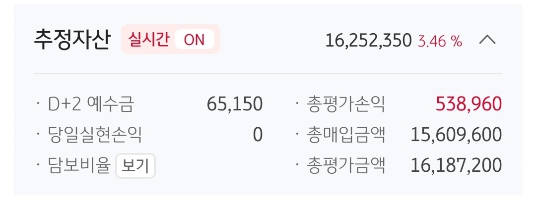 사진 1. 추정자산. 1625만 원. 375만 원 손실 중.