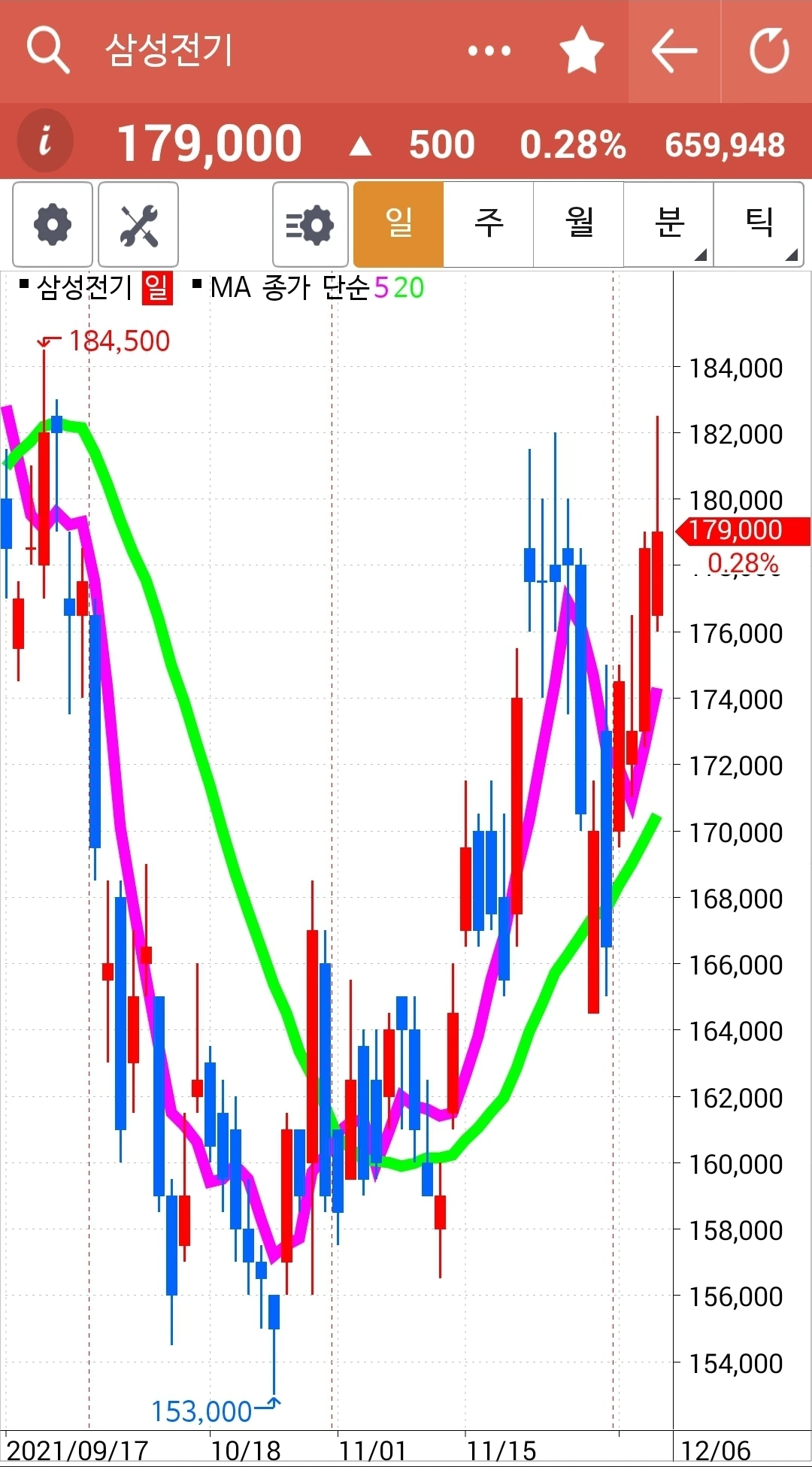 5일선이 20일선 위에 있고 주가는 멋지게 올라가고 있다. 내가 할 일은 없다. 파이팅.