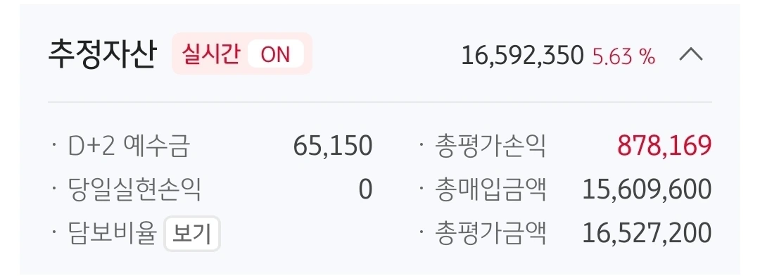 사진 1. 추정자산. 1659만 원. 341만 원 손실 중.