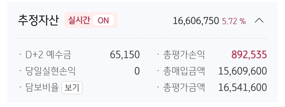 사진 1. 추정자산. 1660만 원. 340만 원 손실 중.