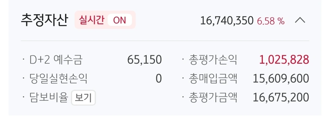 사진 1. 추정자산. 1674만 원. 326만 원 손실 중.