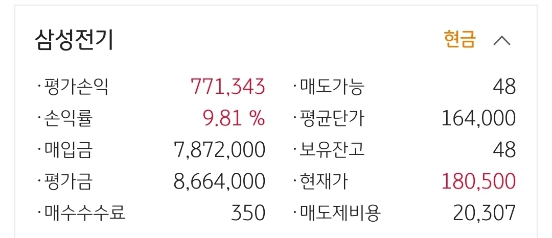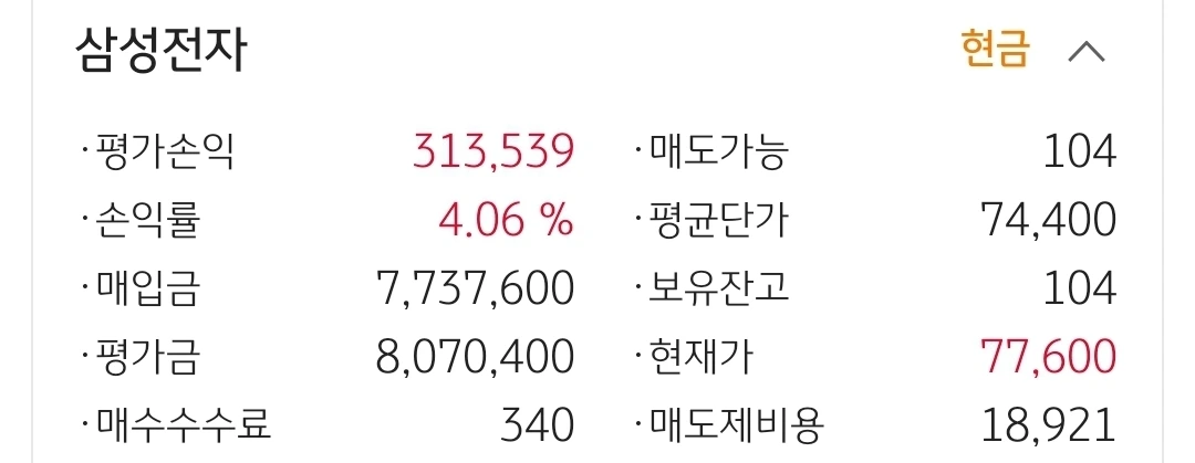 사진 2. 삼성전기. 77만 원 수익중.