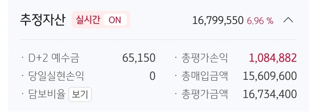 사진 1. 추정자산. 1679만 원 321만 원 손실 중.