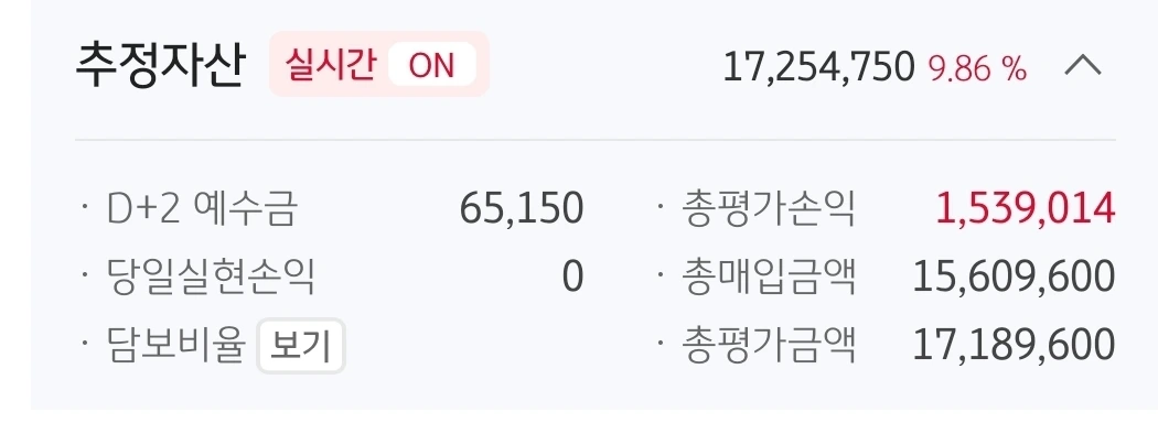 사진 1. 추정자산. 1725만 원. 275만 원 손실 중