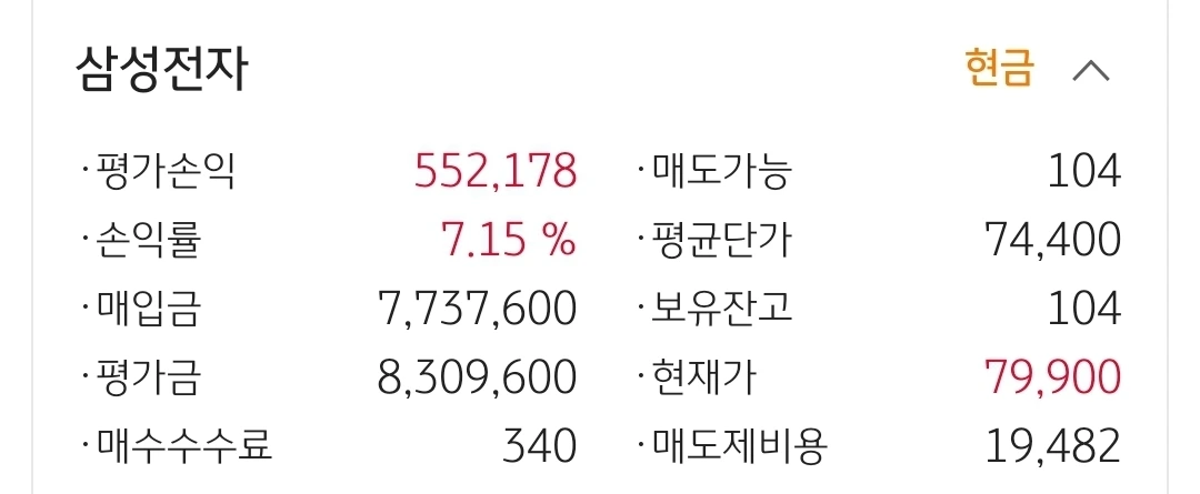 사진 2. 삼성전자. 55만 원 수익중.