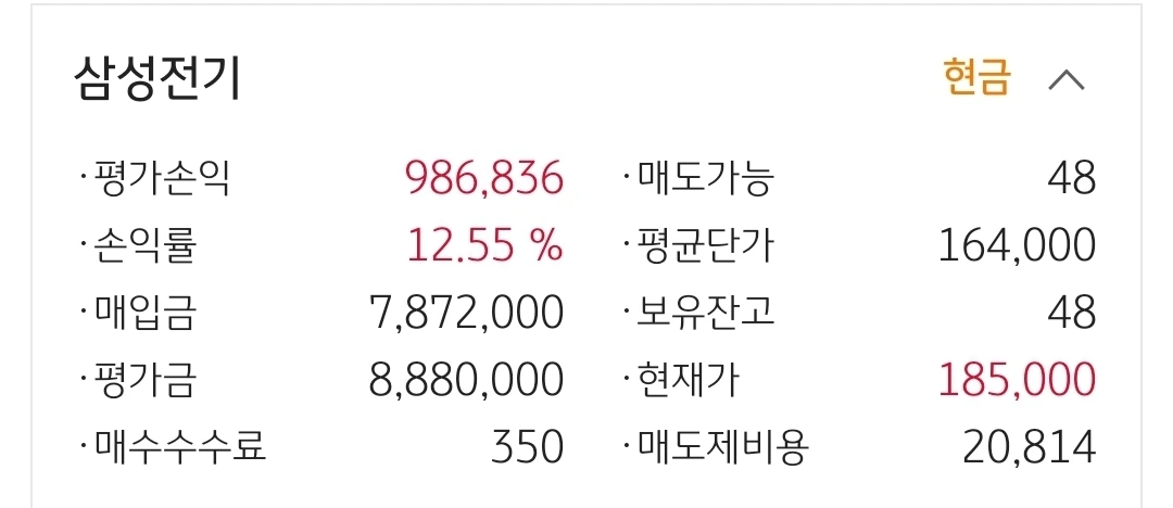 사진 3. 삼성전기. 98만 원 수익중.