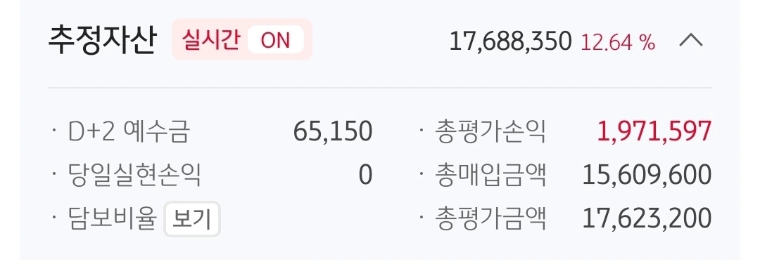 사진 1. 추정자산. 1768만 원. 232만 원 손실 중.