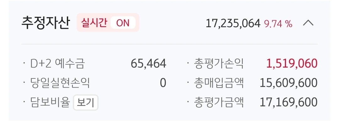 사진 1. 추정자산. 1723만 원. 277만 원 손실 중.