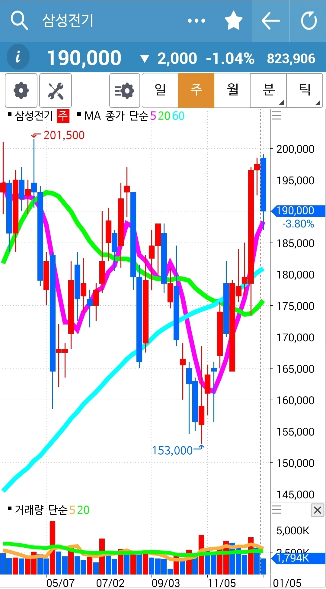 일단 수익을 챙겼어야 할까? 난 수익 챙기기에 영 젬병이다. 그래도 할 수 없다. 아직 책들을 다 못 읽었고 내가 아는 나의 원칙이란 요거 하나니까 그거라도 지킬 밖에. '난 아무것도 몰라요~ 5일선이 20일선 아래로 내려가면 매도할 뿐야요~'