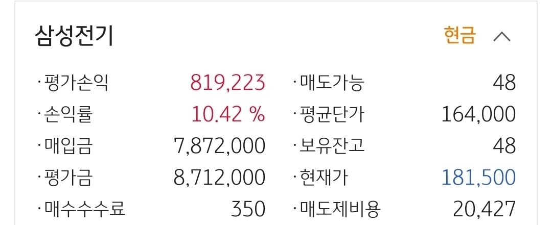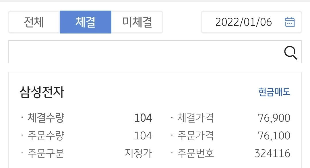 사진 3. 삼성전자 104주 76,900원에 매도한 모습.