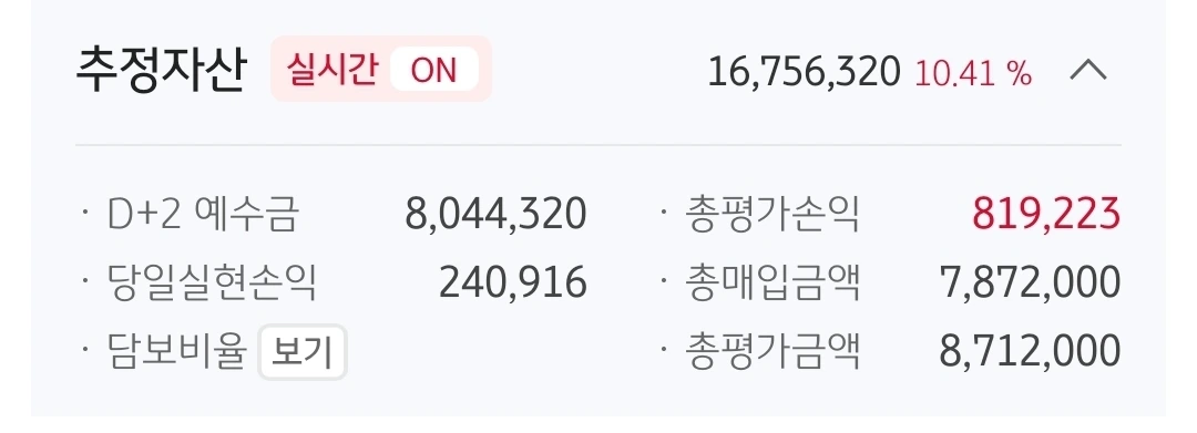 사진 1. 추정자산, 1675만 원. 325만 원 손실 중