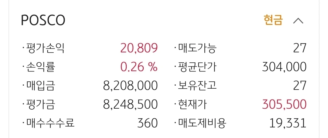 사진 3. 포스코. 2만 원 수익중. 안전빵으로 간다 했더니 그야말로 조금조금이다.