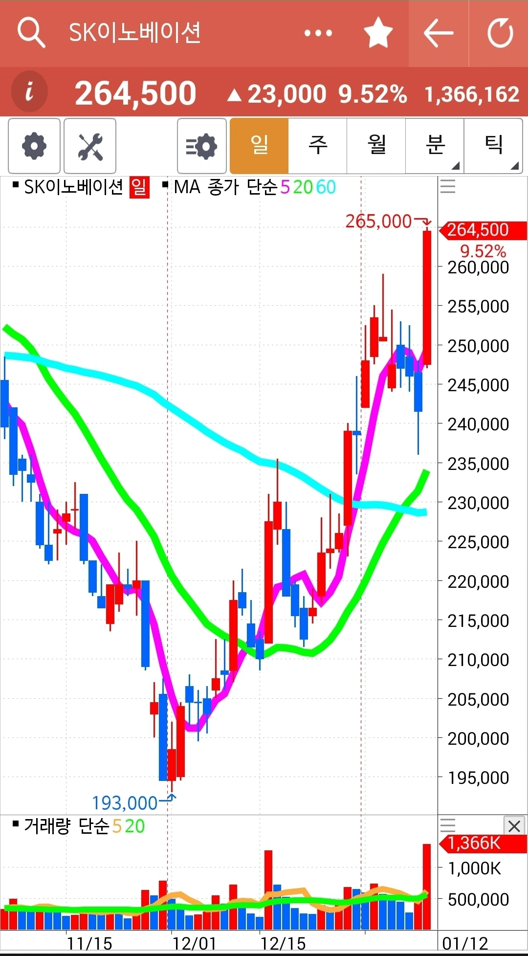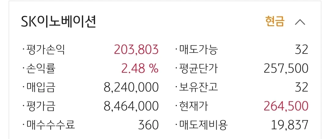 사진 2. SK이노베이션. 20만 원 수익중. 무려 19,000원 올랐을 때 따라갔는데 그리고도 4,000원이 더 올라 수익을 냈다. 캬~