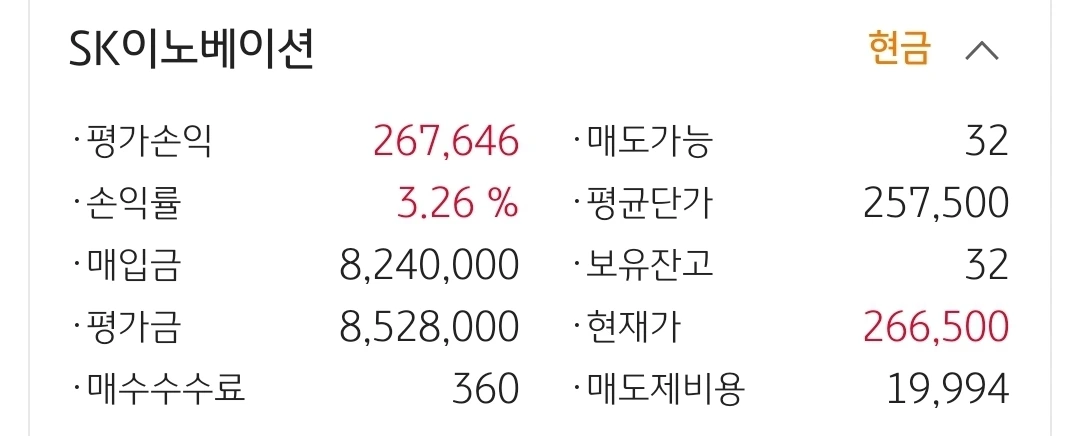 사진 2. SK이노베이션. 26만 원 수익중.