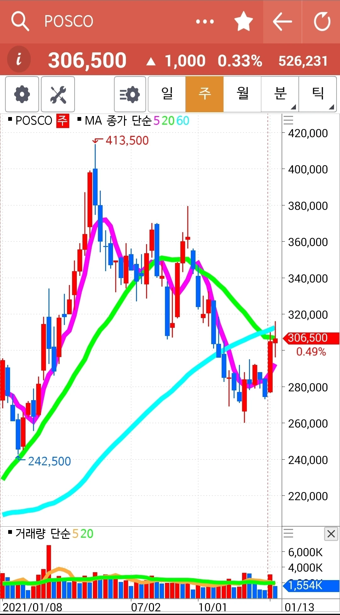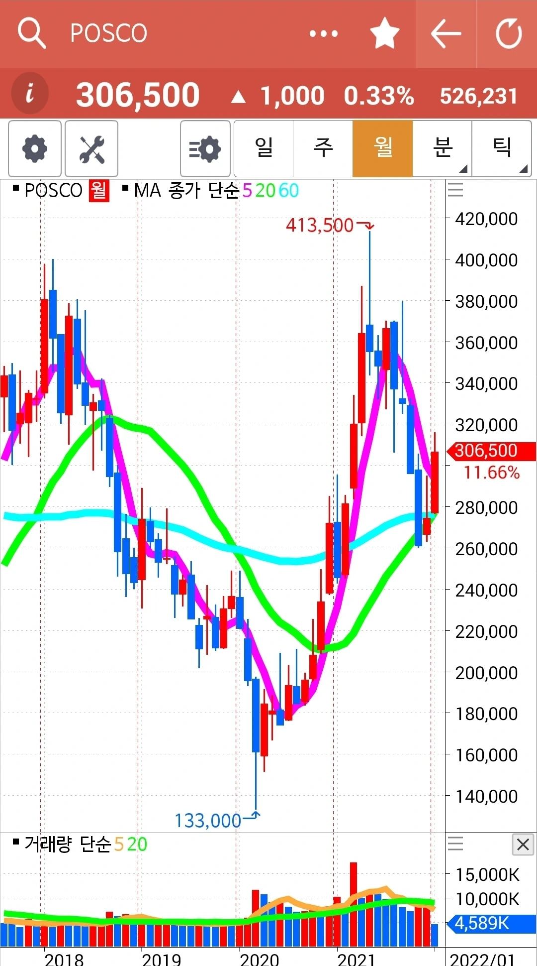 사진 3. 포스코. 4만 원 수익중.