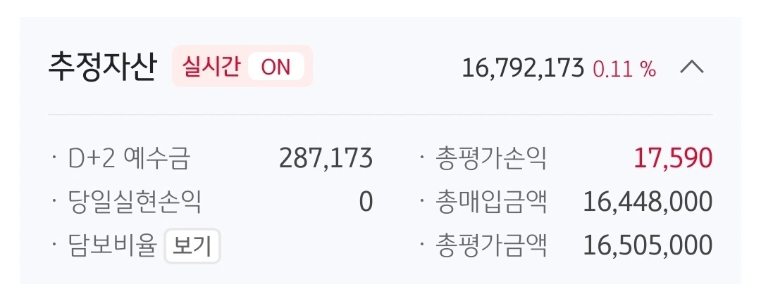 사진 1. 추정자산. 1679만 원. 321만 원 손실 중.