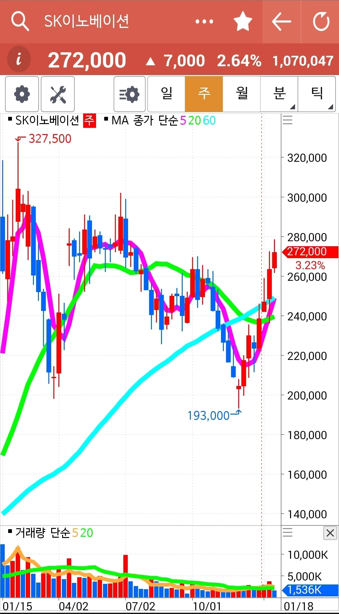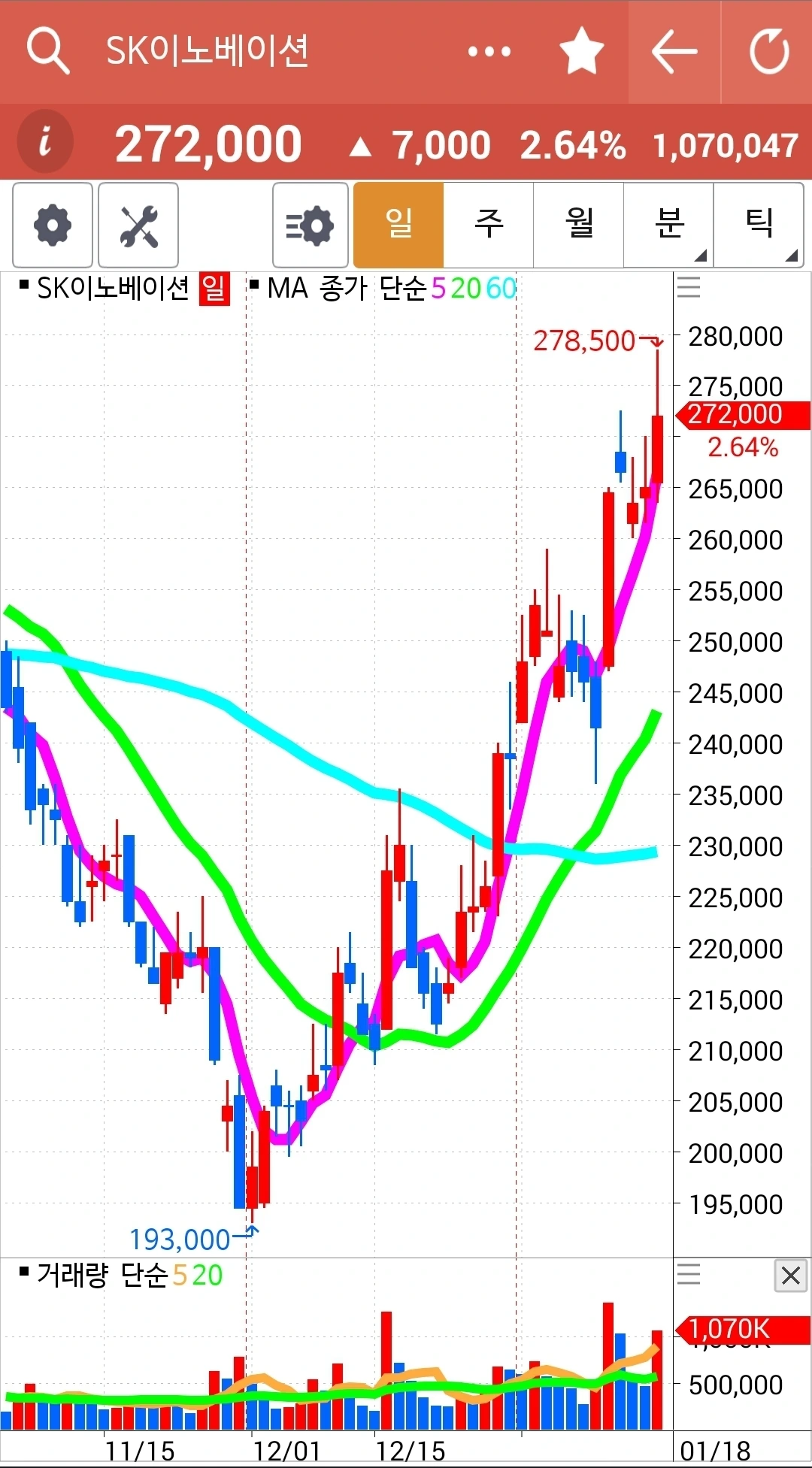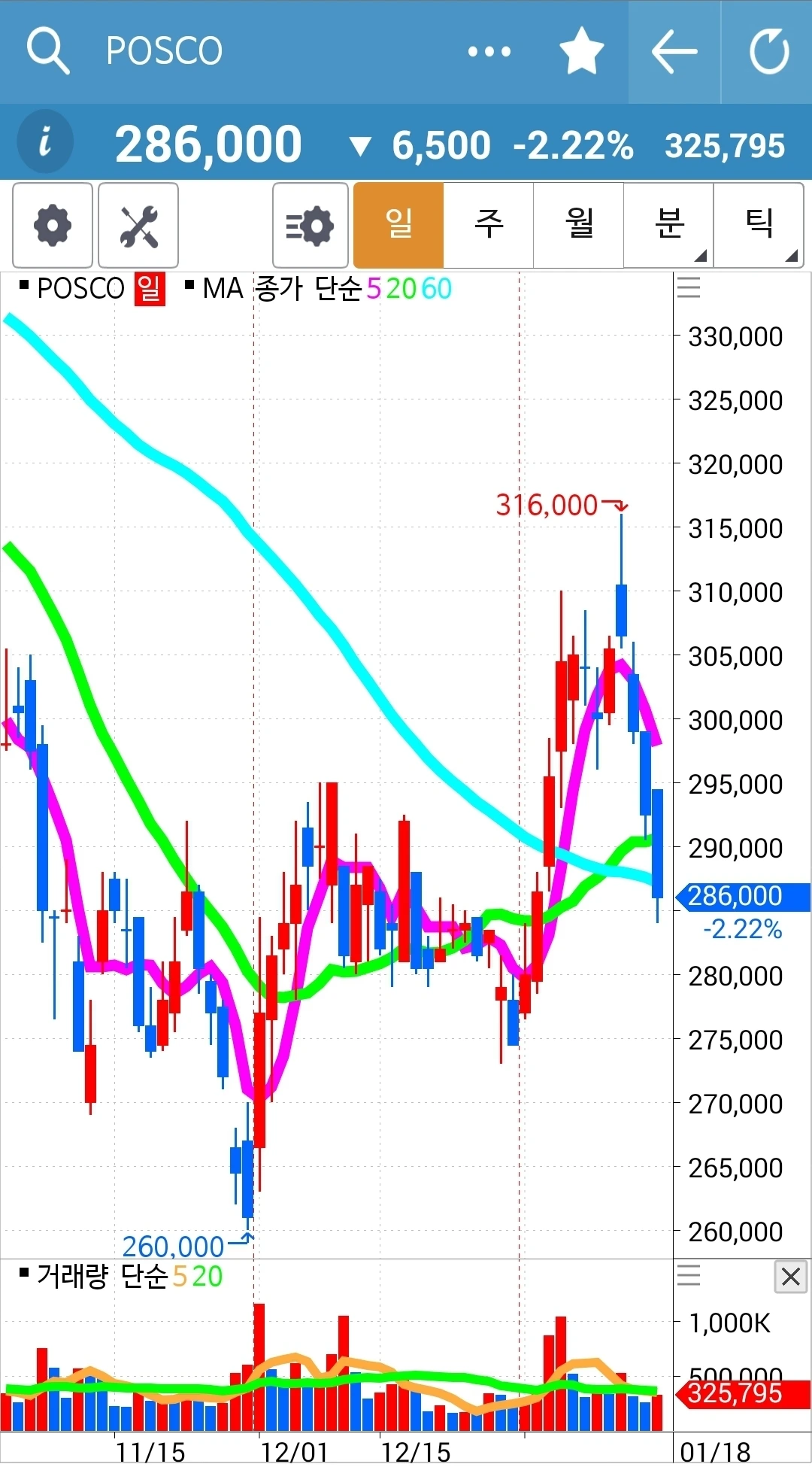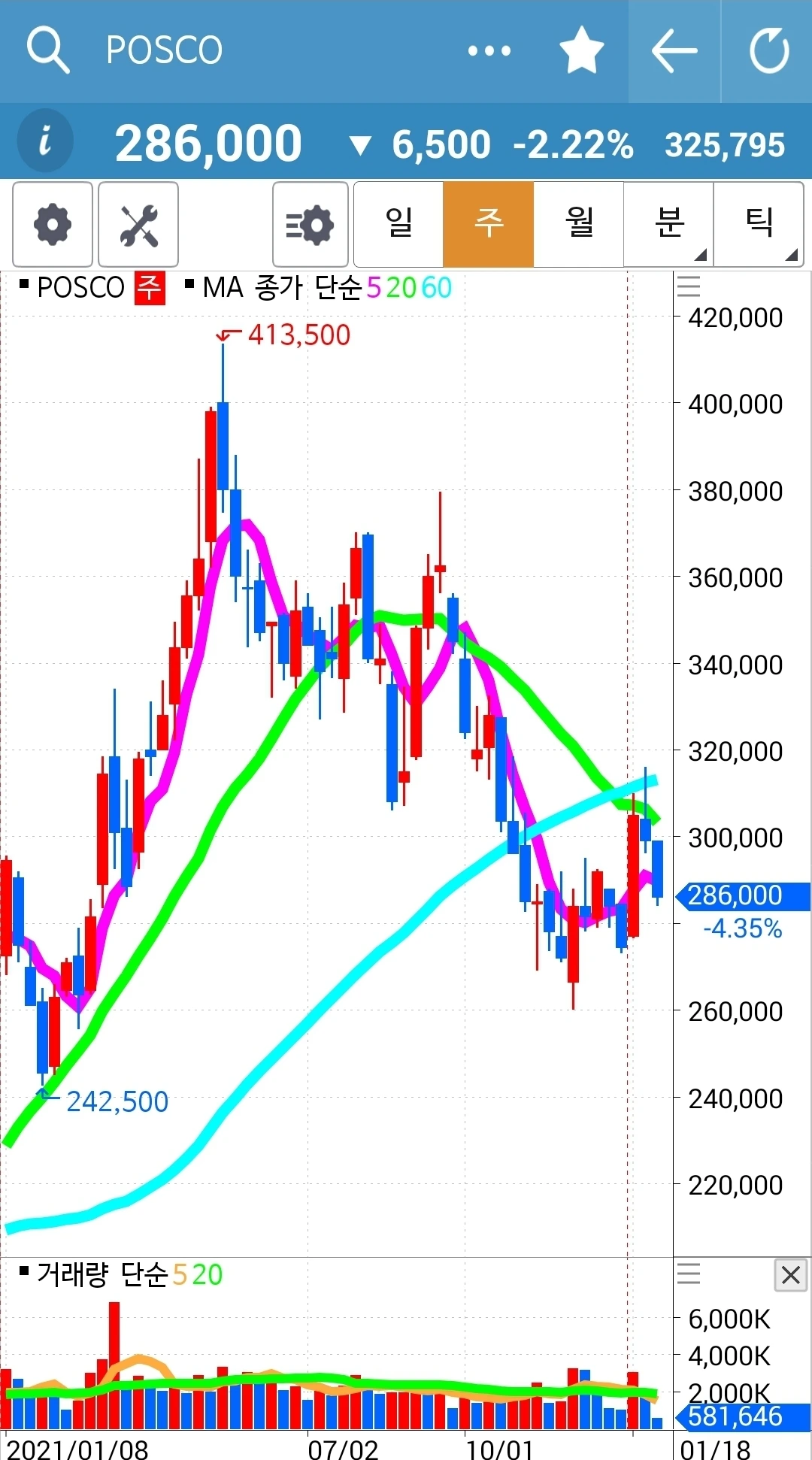 전 고점을 팍팍 뚫어가며 신나게 올라가고 있다. 많이 올라간 게 많이 힘이 있는가 보다. 이것만 하기에 너무 오른 값이 부담돼 고른 포스코는 영 맥을 못 추고 있다. 요걸 다 했다면 얼마나 좋을까. 잠시 후회를 해본다. 하하